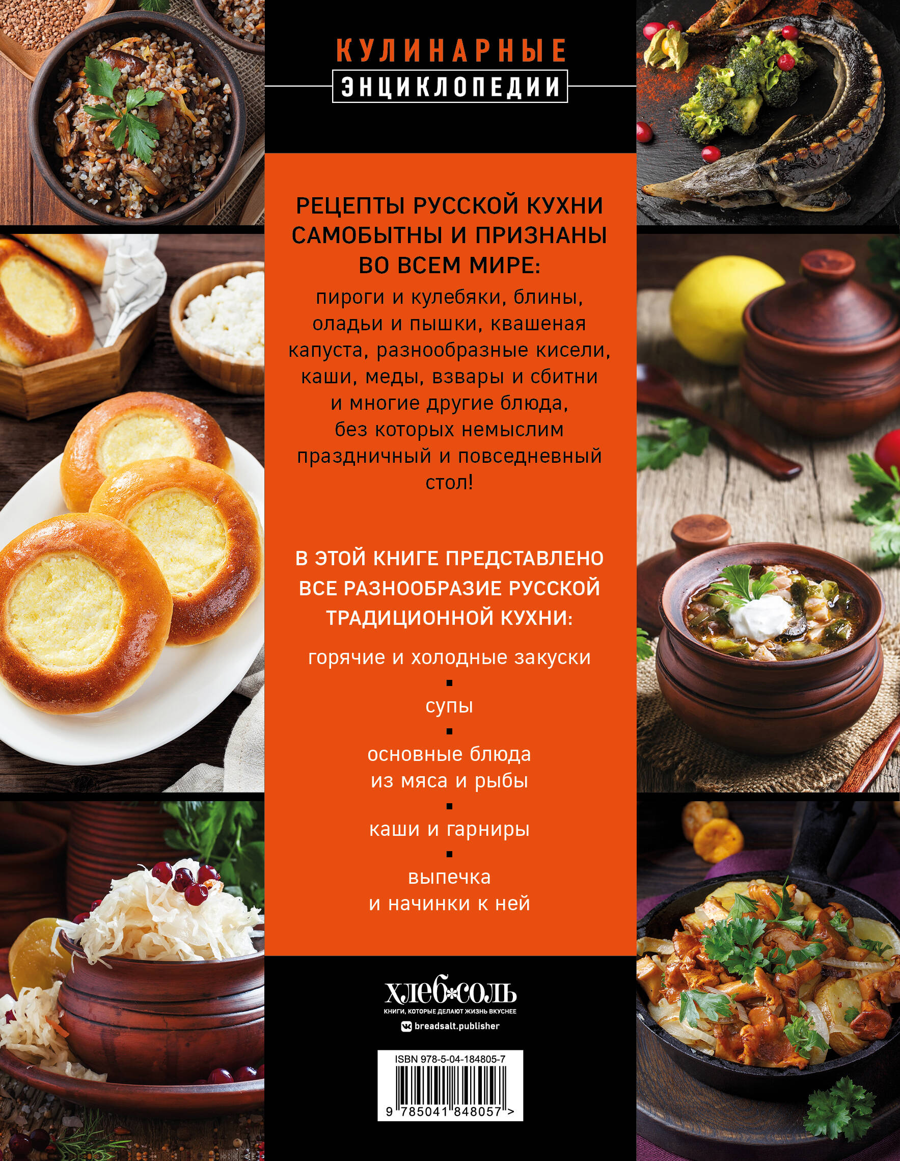 Русская кухня, наряду с итальянской, французской и японской, знаменита во всем мире. Ценители ее непревзойденности, аутентичности и разнообразия, где бы они ни жили, готовы в любой момент отдаться во власть блинов, пирогов, пельменей, жаркого, щей, рассольников и ухи, неповторимых солений и удивительных квасов, киселей и сбитней. В этой большой энциклопедии собраны и описаны самые известные блюда русской кухни. Вместе с цитатами русских писателей, советами и секретами в книге поданы в большом разнообразии холодцы, заливные, паштеты, рулеты, окрошки, гороховые и грибные супы, мясные и рыбные блюда, каши и запеканки, блюда из репы и тыквы, варенья, мармелады, пастилы… По русскому обычаю стол всегда должен ломиться от кушаний! Пусть эта книга поможет соблюдать эту традицию!| Издательство | ООО "Издательство "Эксмо" |