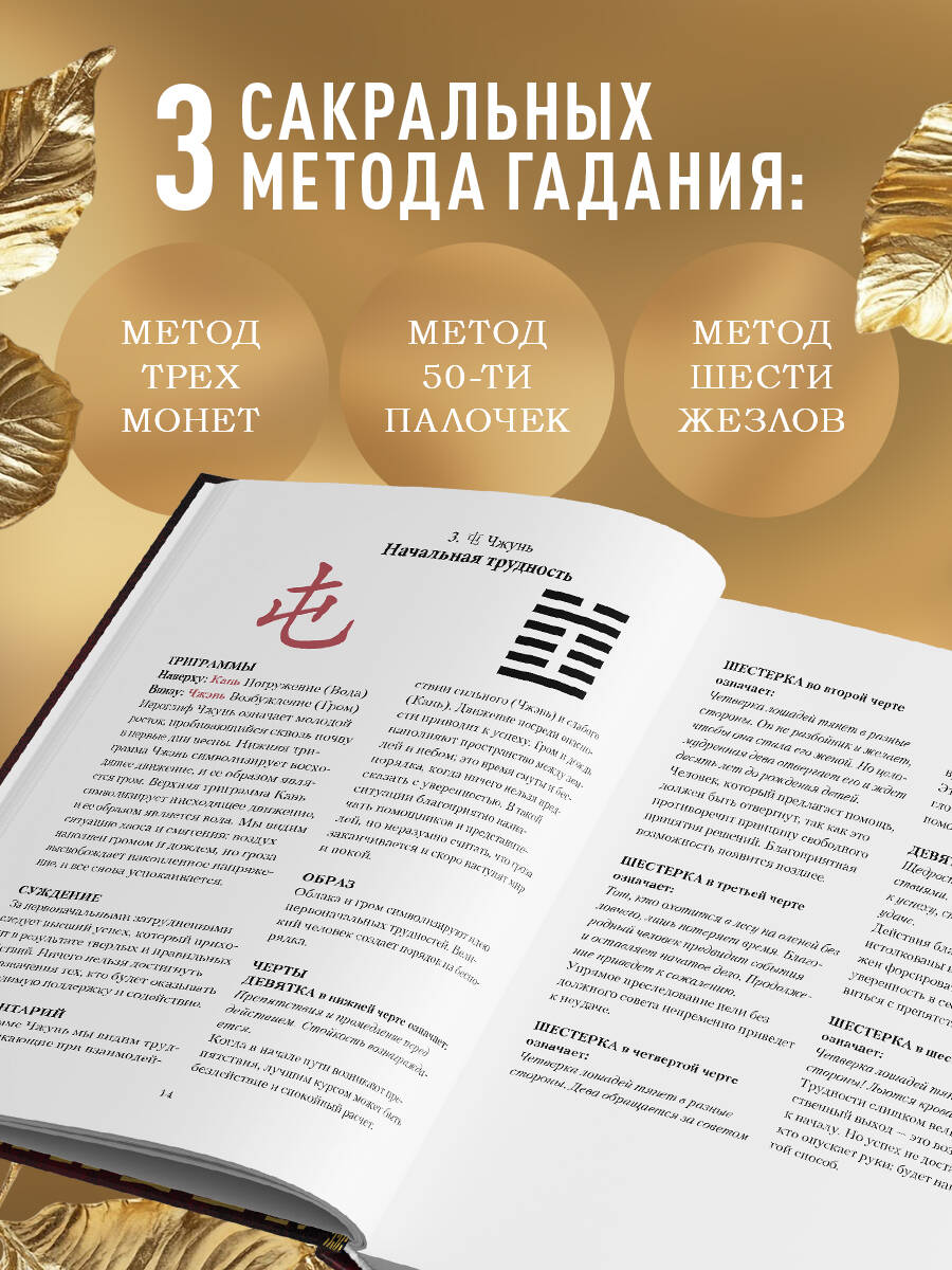 «Книга перемен» в подарочном издании. На страницах этого проекта представлены три вида гаданий: метод трех монет, метод 50-ти палочек и метод шести жезлов. Каждая гексаграмма сопровождается несколькими текстами, пришедшими к нам из разных эпох. Узнайте свою судьбу, освоив древнее искусство предсказания будущего. Доступный текст и историческая достоверность делают эту книгу прекрасным подарком для близкого человека.| Издательство | ООО "Издательство "Эксмо" |