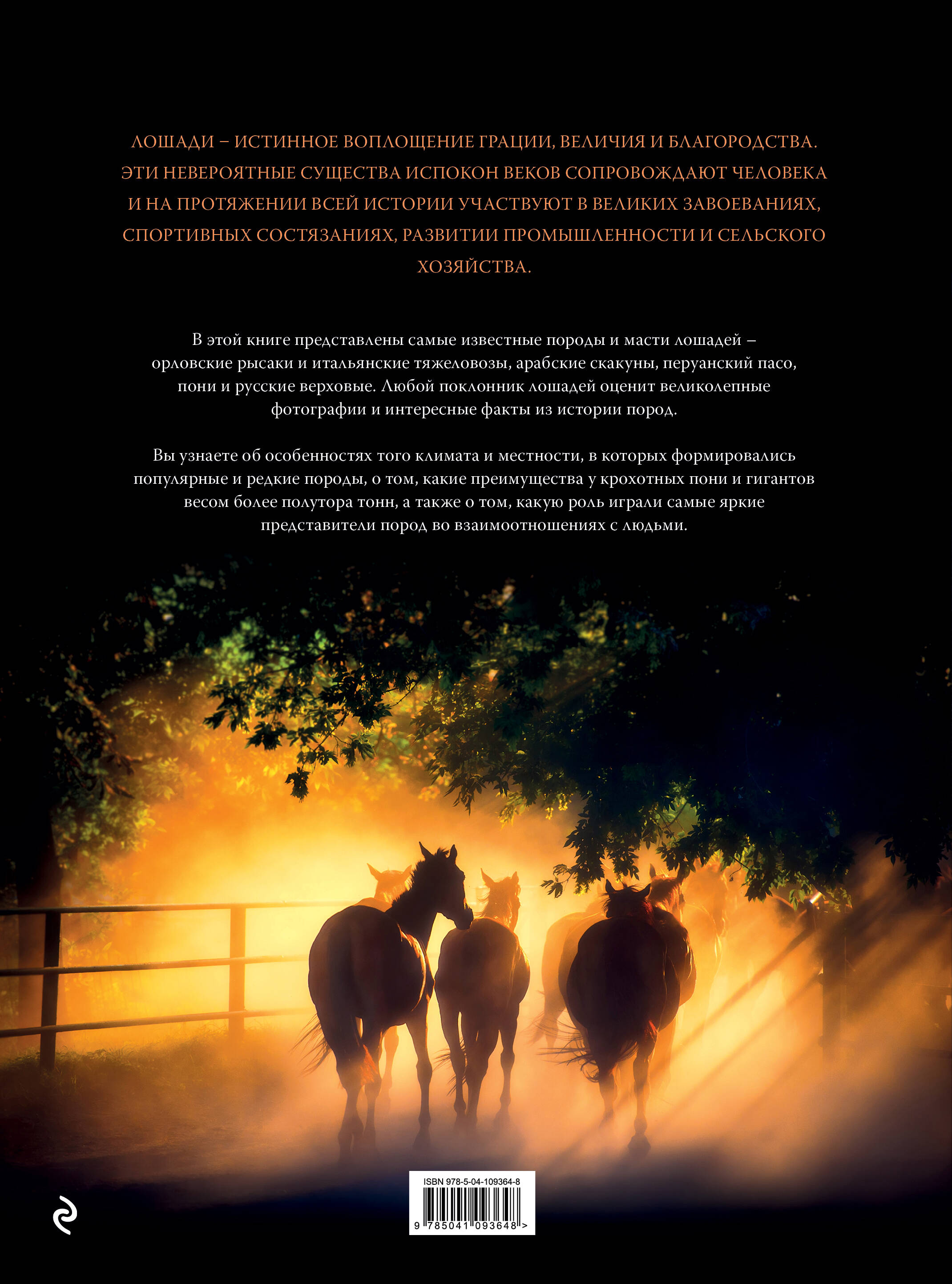 Лошади - истинное воплощение грации, величия и благородства. Эти невероятные существа испокон веков сопровождают человека и на протяжении всей истории участвуют в великих завоеваниях, спортивных состязаниях, развитии промышленности и сельского хозяйства. В этой книге представлены самые известные лошади всех мастей, возрастов и пород - орловские рысаки и итальянские тяжеловозы, арабские скакуны, перуанский пасо, пони и русские верховые. Любой поклонник лошадей оценит великолепные фотографии и интересные факты из истории пород. Вы узнаете об особенностях того климата и местности, в которых формировались популярные и редкие породы, о том, какие преимущества у крохотных пони и гигантов весом более полутора тонн, а также о том, какую роль играли самые яркие представители пород во взаимоотношениях с людьми.| Издательство | ООО "Издательство "Эксмо" |