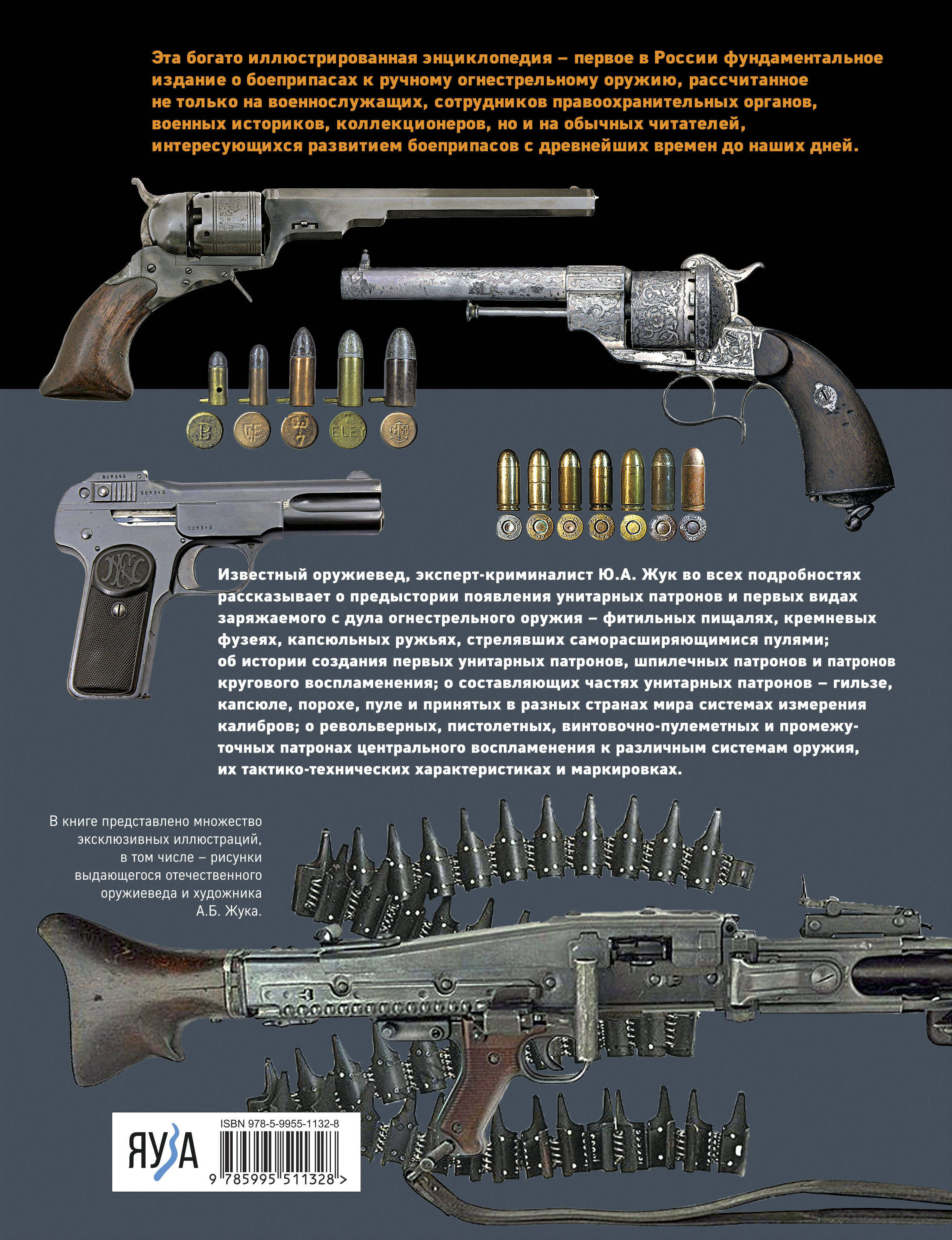 Эта богато иллюстрированная энциклопедия - первое в России фундаментальное издание о боеприпасах к ручному огнестрельному оружию, рассчитанное не только на военнослужащих, сотрудников правоохранительных органов, военных историков, коллекционеров, но и на обычных читателей, интересующихся развитием боеприпасов с древнейших времен до наших дней. Известный оружиевед, эксперт-криминалист Ю.А. Жук во всех подробностях рассказывает о предыстории появления унитарных патронов и первых видах заряжаемого с дула огнестрельного оружия - фитильных пищалях, кремневых фузеях, капсюльных ружьях, стрелявших саморасширяющимися пулями; об истории создания первых унитарных патронов, шпилечных патронов и патронов кругового воспламенения; о составляющих частях унитарных патронов - гильзе, капсюле, порохе, пуле и принятых в разных странах мира системах измерения калибров; о револьверных, пистолетных, винтовочно-пулеметных и промежуточных патронах центрального воспламенения к различным системам оружия, их тактико-технических характеристиках и маркировках. В книге представлено множество эксклюзивных иллюстраций, в том числе - рисунки выдающегося отечественного оружиеведа и художника А.Б. Жука.| Издательство | Яуза-пресс ООО |