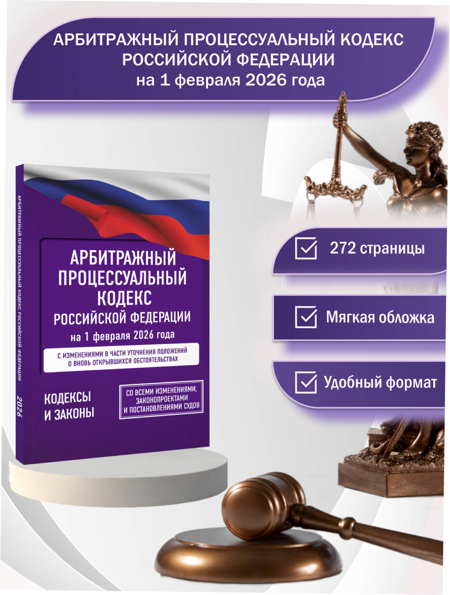 Данное издание Арбитражного процессуального кодекса РФ сверено с официальным источником и приводится по состоянию на 1 февраля 2026 года. Кодекс учитывает все изменения, опубликованные в официальных источниках на момент подписания издания в печать. В издании представлена информация о возможных изменениях в АПК РФ по результатам принятия законопроектов, находящихся на рассмотрении в Государственной Думе РФ. Для удобства пользования в тексте кодекса применяется система общепринятых сокращений, а также приводятся ссылки на федеральные законы, постановления Правительства Российской Федерации, постановления и определения высших судебных органов Российской Федерации, относящиеся к вопросам применения норм АПК РФ.