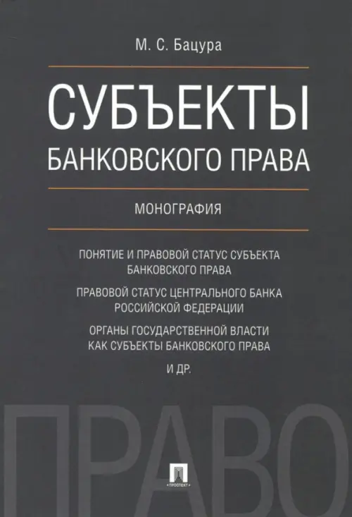 Настоящая работа посвящена комплексному исследованию института субъектов банковского права: исследованию теоретических и практических проблем, связанных с определением понятия и содержания субъекта банковского права и банковских правоотношений, особенностями правового регулирования статуса субъектов банковского права и их участия в банковских правоотношениях, носящих публично-правовой характер.