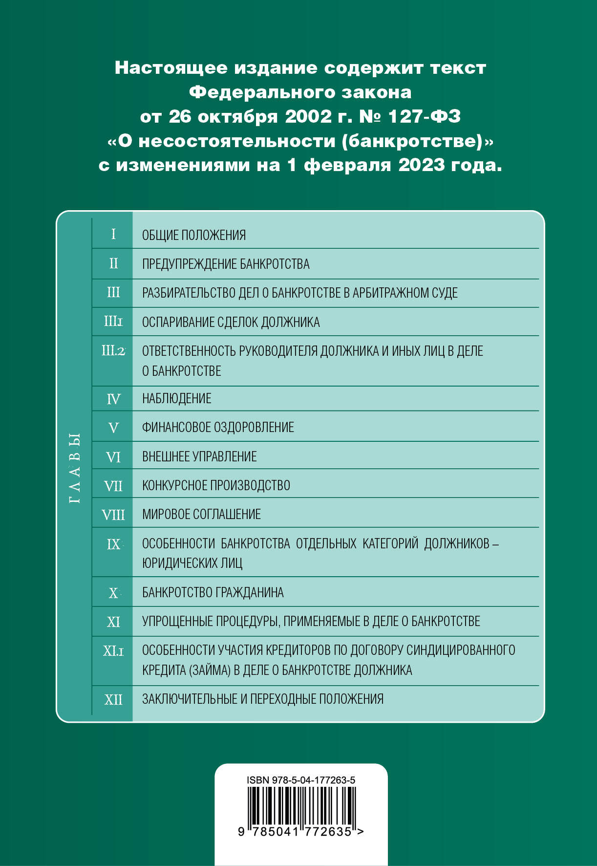Аннотация: ФЗ "О несостоятельности (банкротстве)". В ред. на 01.02.23 / ФЗ №127-ФЗ