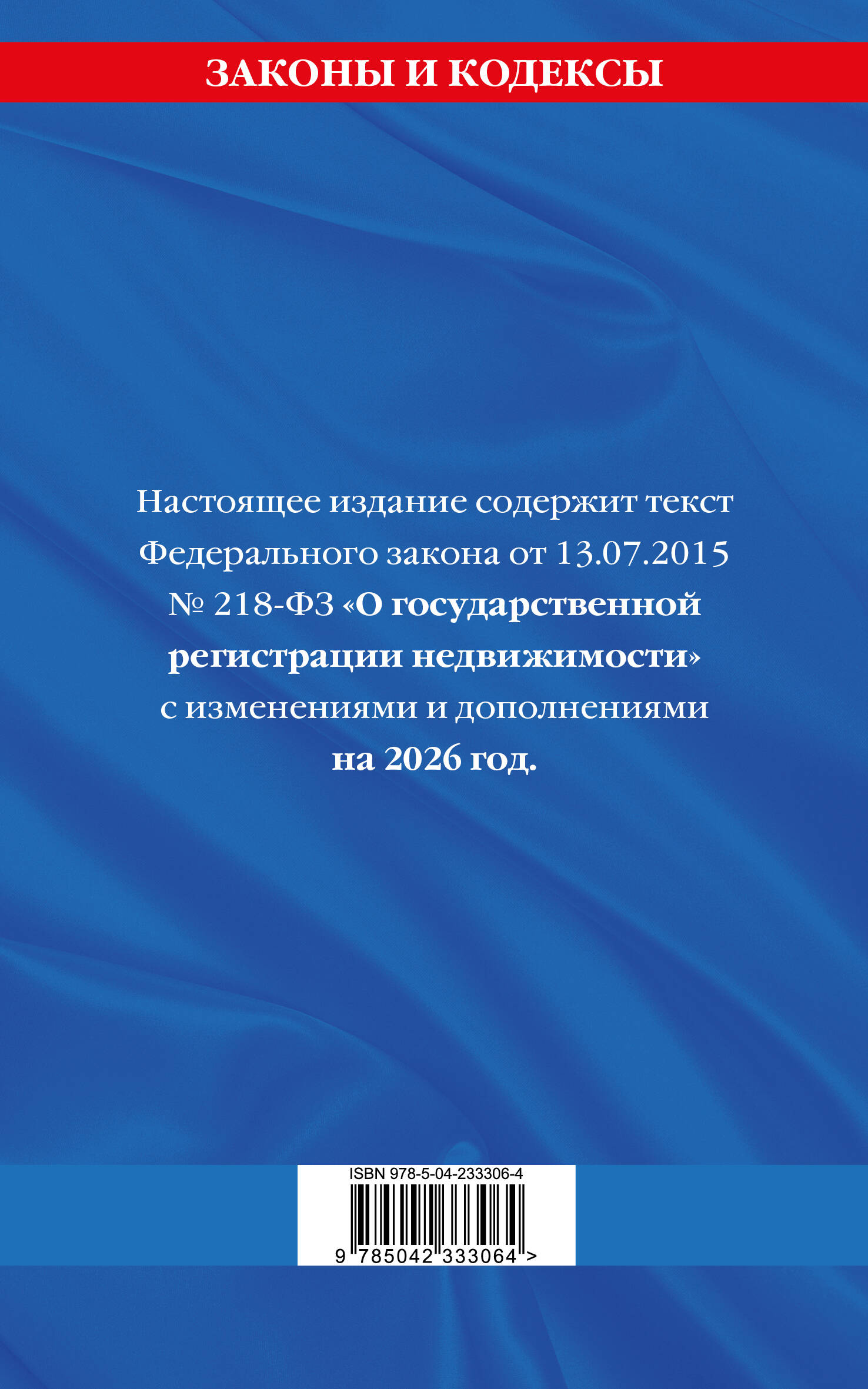 Настоящее издание содержит текст Федерального закона от 13.07.2015 № 218-ФЗ «О государственной регистрации прав на недвижимое имущество и сделок с ним» с изменениями и дополнениями на 2026 год. В данной книге содержится вся актуальная информация на дату подписания издания в печать.| Издательство | ООО "Издательство "Эксмо" |