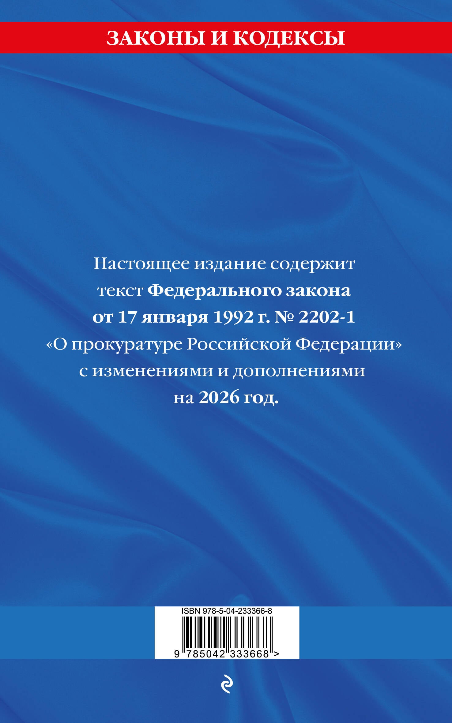 Настоящее издание содержит текст Федерального закона от 17 января 1992 года № 2202-1 «О прокуратуре Российской Федерации» с изменениями и дополнениями на 2026 год. В данной книге приводится вся актуальная информация на дату подписания издания в печать.| Издательство | ООО "Издательство "Эксмо" |