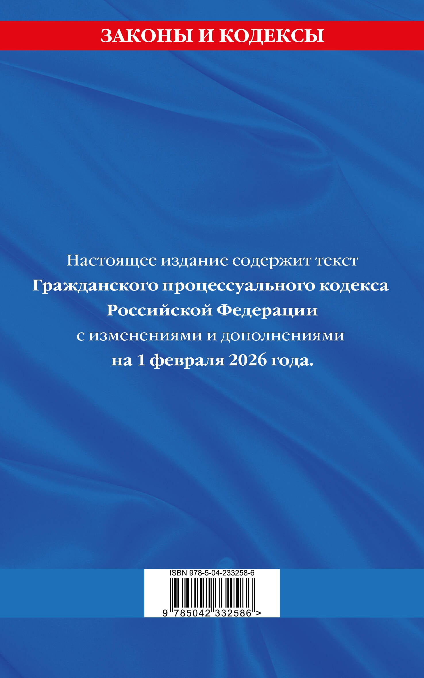 Настоящее издание содержит текст Гражданского процессуального кодекса Российской Федерации в редакции, действующей на 1 февраля 2026 года. В данной книге приводится вся актуальная информация на дату подписания издания в печать.| Издательство | ООО "Издательство "Эксмо" |
