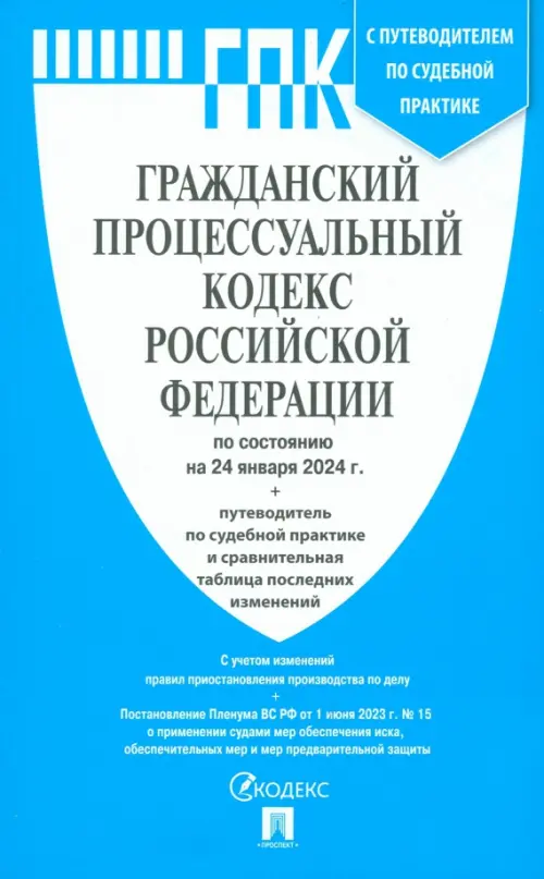 Аннотация: Гражданский процессуальный кодекс РФ по состоянию на 24.01.2024