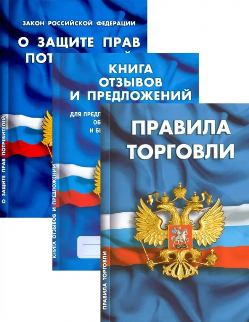 Уголок потребителя. Комплект из 3-х книг включает: - Закон Российской Федерации "О защите прав потребителей" - Книгу отзывов и предложений для предприятий розничной торговли, общественного питания и бытового обслуживания - Правила торговли. Тексты подготовлены с использованием системы "КонсультантПлюс" и сверены с официальным источником.