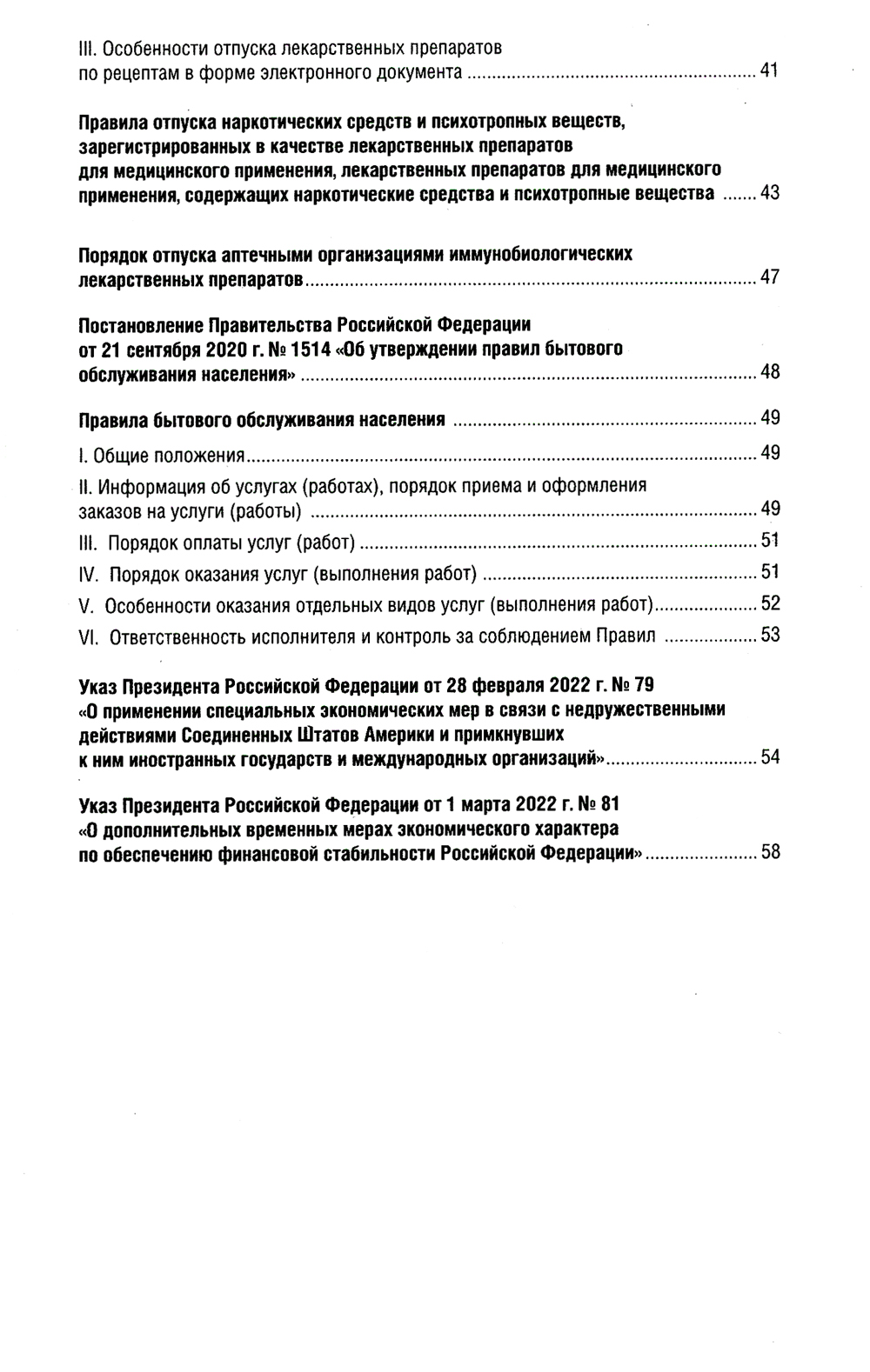 В сборник включены основные нормативные акты, регулирующие отношения, возникающие между продавцом и покупателем и определяющие требования в области продажи товаров, в том числе Указы Президента Российской Федерации от 28 февраля 2022 г. № 79 «О применении специальных экономических мер в связи с недружественными действиями Соединенных Штатов Америки и примкнувших к ним иностранных государств и международных организаций» и от 1 марта 2022 г. № 81 «О дополнительных временных мерах экономического характера по обеспечению финансовой стабильности Российской Федерации».