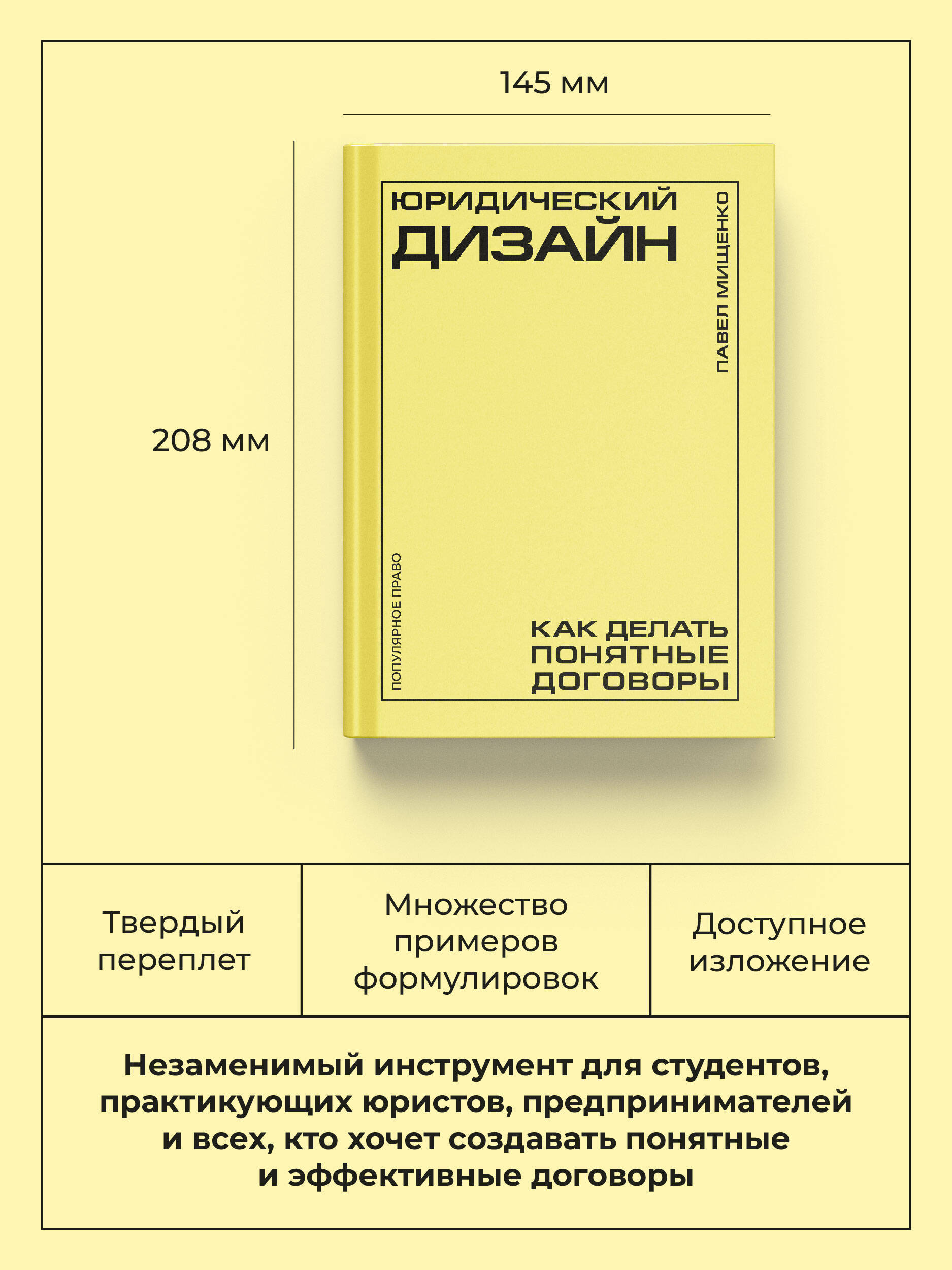 Павел Мищенко - автор телеграм-канала ilovedocs, эксперт в области договорного права и юридического дизайна. Книга посвящена ключевым аспектам юридического дизайна - пониманию целевого читателя, емкому и точному формулированию условий, структуре договора, верстке и применению нейросетей. Приемы, изложенные в книге, помогут вам: - повысить ценность и авторитет своей работы для коллег и клиентов; - создать культуру для качественной работы команды; - сократить количество согласований и правок. Издание станет незаменимым инструментом для студентов, практикующих юристов, предпринимателей и всех, кто хочет создавать понятные и эффективные договоры.| Издательство | Издательство "АСТ" |