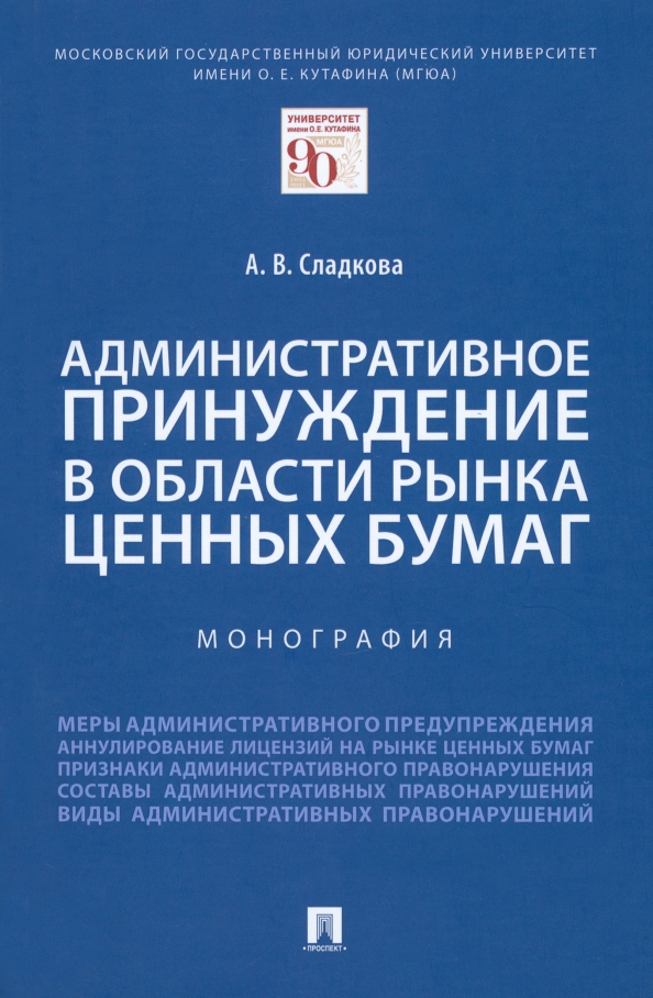 В монографии анализируются меры административного принуждения в области рынка ценных бумаг, в том числе меры административного пресечения, в частности вопросы, касающиеся аннулирования квалификационных аттестатов специалистов финансового рынка, а также аннулирования лицензий. Отдельное внимание уделяется вопросам административной ответственности за правонарушения, понятию и признакам административного правонарушения и характеристике юридического состава правонарушения в области рынка ценных бумаг. Законодательство приведено по состоянию на 1 февраля 2021 г. Для студентов, аспирантов, научных сотрудников, преподавателей юридических вузов и факультетов, научных работников, практикующих юристов и всех интересующихся вопросами административного принуждения в области рынка ценных бумаг.