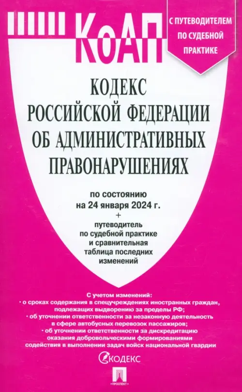 Аннотация: Кодекс РФ об административных правонарушениях по состоянию на 24.01.2024 с таблицей изменений
