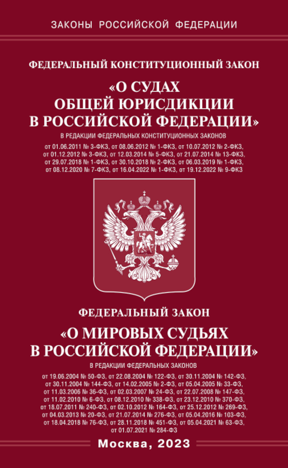 Аннотация: ФКЗ "О судах общей юрисдикции в РФ" и ФЗ "О мировых судьях"