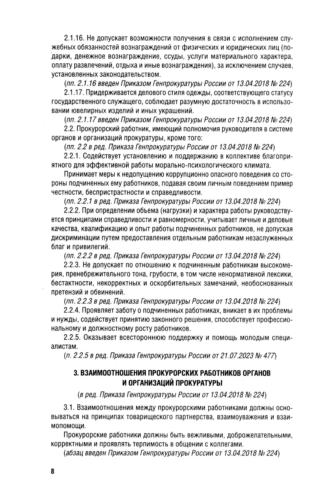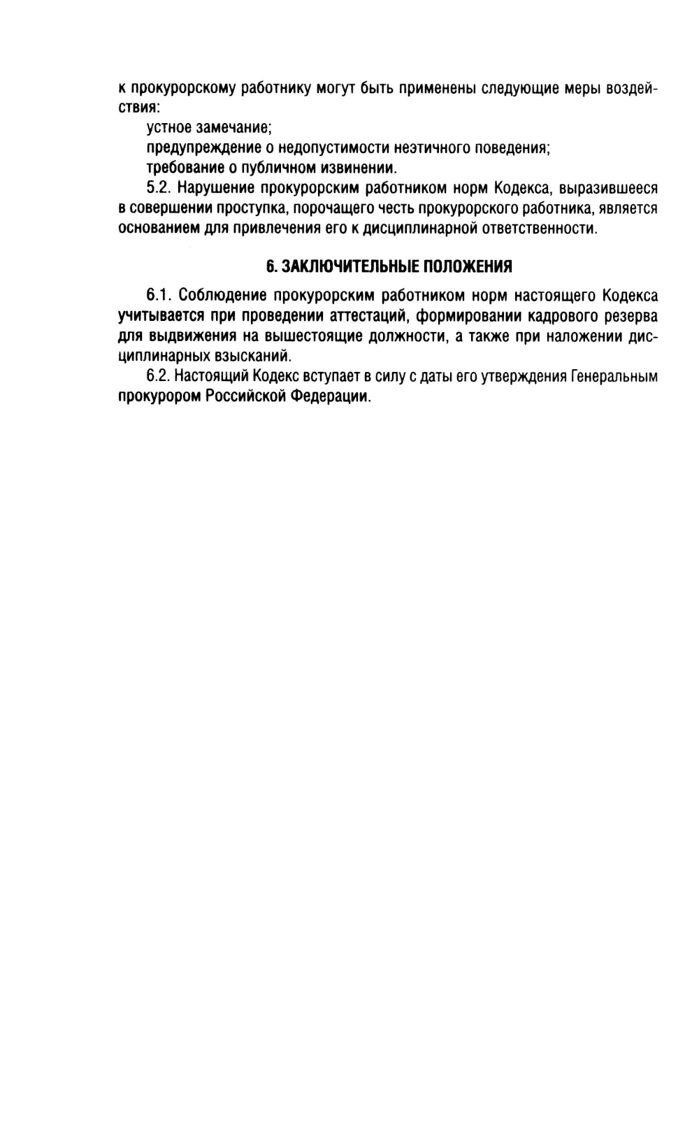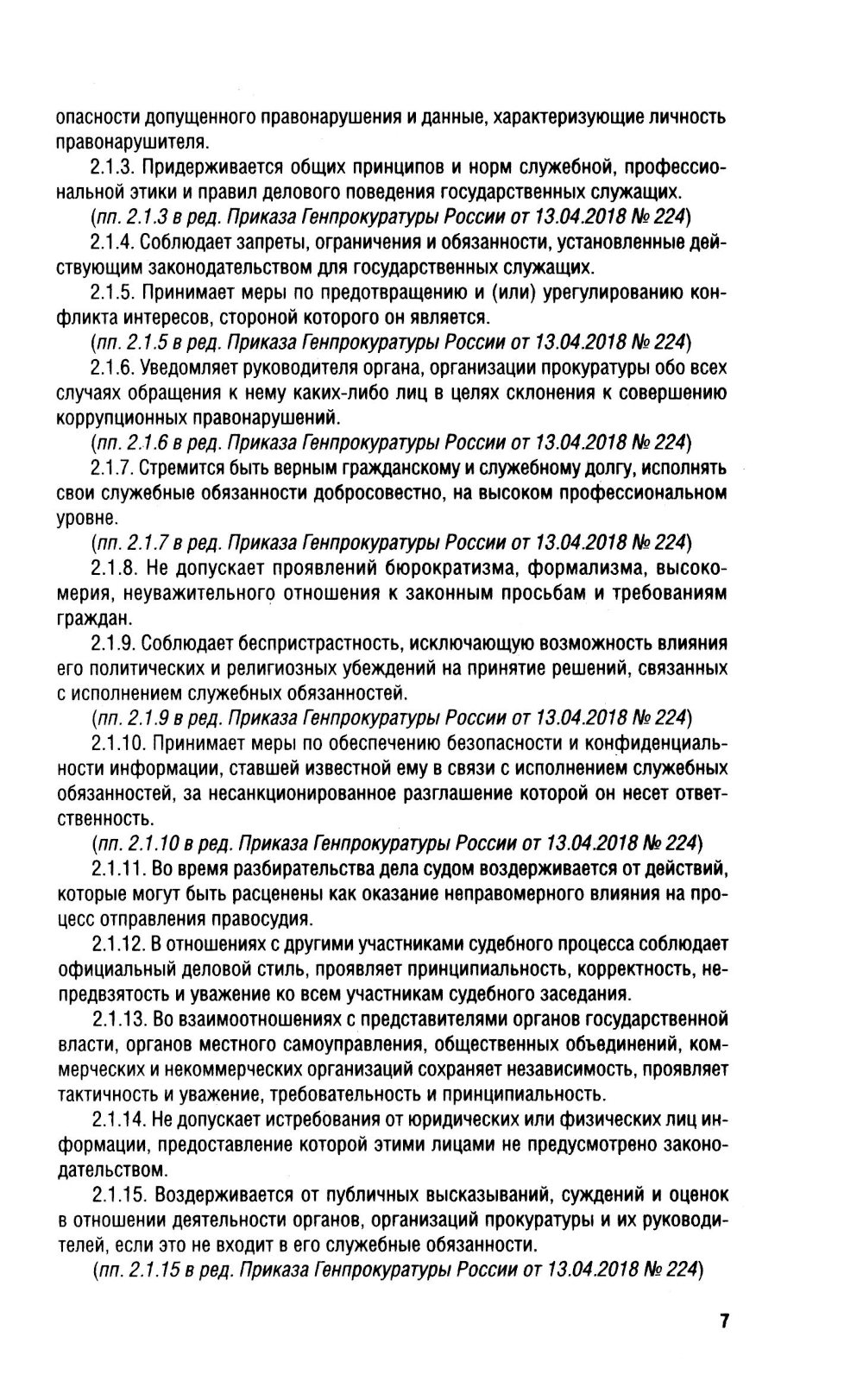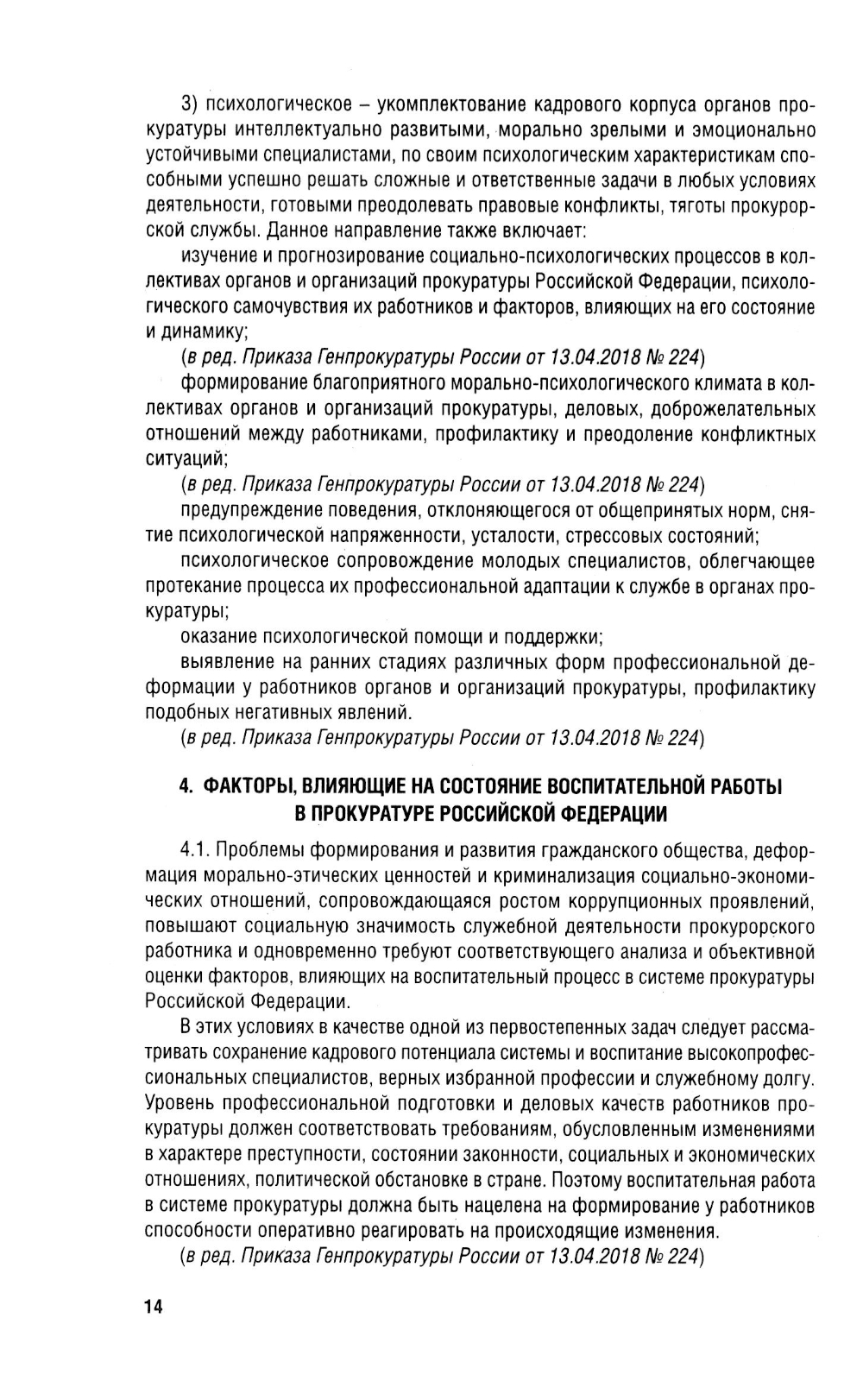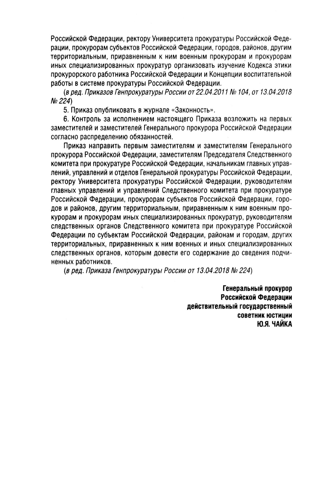 В издание вошли Кодекс этики прокурорского работника Российской Федерации, Концепция воспитательной работы в системе прокуратуры Российской Федерации, а также Приказ Генпрокуратуры России, которым они утверждены. Тексты документов подготовлены с использованием профессиональной юридической системы «Кодекс», сверены с официальным источником. В настоящем издании нормативные документы приводятся с учетом изменений, принятых нормативными актами, опубликованными на дату подписания издания в печать.| Издательство | Проспект |