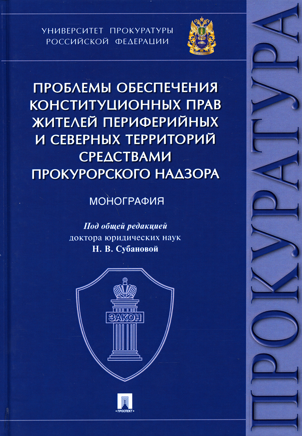 В монографии освещаются теоретико-правовые и организационные основы обеспечения конституционных прав жителей периферийных и северных территорий России, раскрываются международно-правовые аспекты регулирования прав человека. Основное внимание авторы уделяют прокурорскому надзору вне уголовно-правовой сферы, предлагают меры по совершенствованию законодательного регулирования прав жителей периферии и деятельности органов прокуратуры. В 2019 г. в конкурсе на лучшее издание Университета прокуратуры Российской Федерации 2018 г. в номинации «Лучшее научное издание» настоящая монография была признана победителем. Законодательство приведено по состоянию на 1 декабря 2019 г. Для научных работников, практикующих юристов, преподавателей, аспирантов, студентов, а также широкого круга читателей, заинтересованных в изучении проблем обеспечения прав и свобод человека и гражданина.