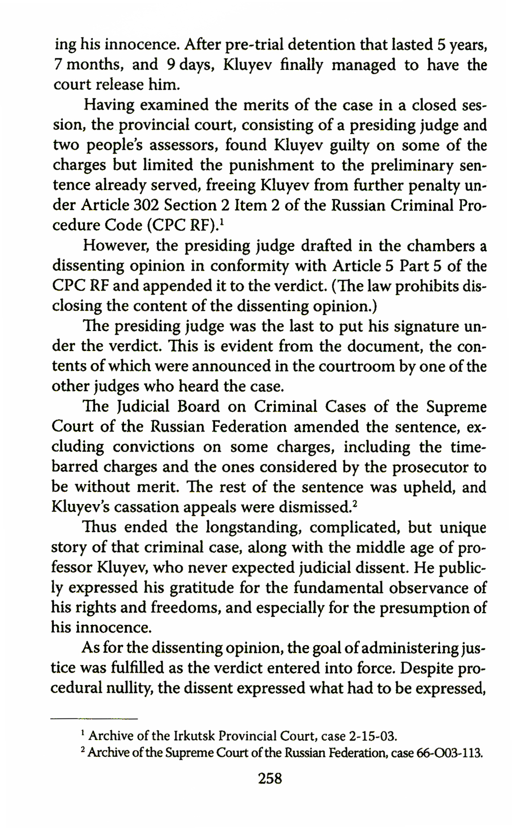 Один из 676-ти правосудных приговоров написан судьёй Владимиром Арсентьевым короткой ночью при свечах в далёком северном посёлке Восточной Сибири на рубеже веков и спустя 20 лет, пока цвела весна 2020 года, родилась эта книга. Исходя из своих дел, автор свидетельствует о праве человека быть не средством, а целью существования и деятельности государства, в котором идеалы свободы, равенства, справедливости составляют высшие принципы осуществления уголовного правосудия и обеспечивают спокойствие правового состояния гражданского общества, определяя всё наше поведение.| Издательство | Родина |