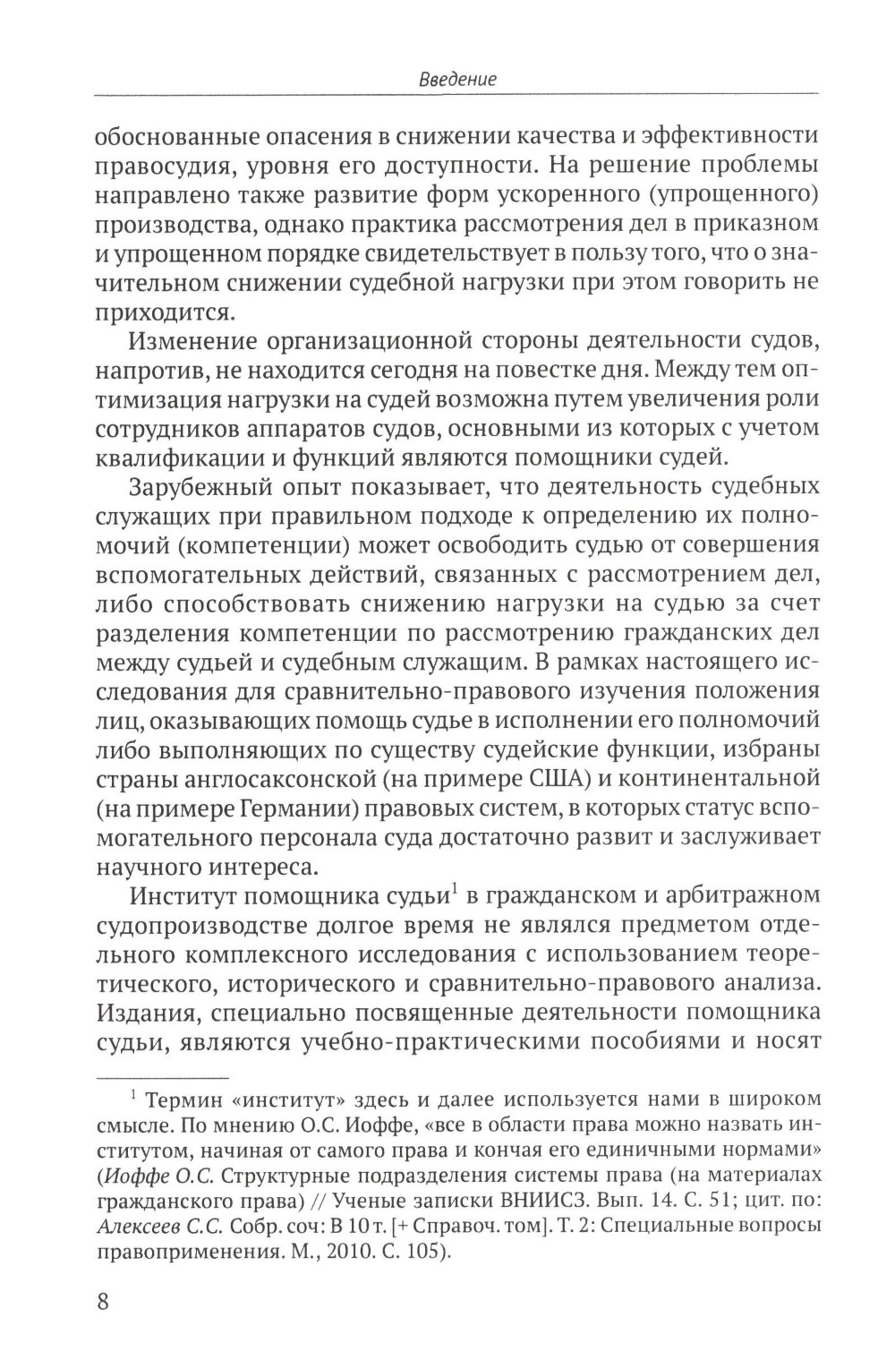 Монография посвящена правовому положению помощника судьи в гражданском и арбитражном судопроизводстве. В книге рассмотрены основные этапы становления и развития института помощника судьи в России, судебного клерка в США и рехтспфлегера в Германии. Автором исследована компетенция помощника судьи в России, а также должностных лиц суда, оказывающих помощь судье в исполнении его полномочий либо выполняющих по существу судейские функции в зарубежных странах. Значительное внимание уделено проблемам правового положения помощника судьи и определению его места в системе гражданских процессуальных и арбитражных процессуальных отношений. Разработана теоретическая основа для изменения правового статуса помощника судьи в российском гражданском и арбитражном судопроизводстве, наделения помощника судьи самостоятельными процессуальными полномочиями. Выводы, положения и рекомендации в настоящем издании могут быть использованы законодателем при работе над процессуальным законодательством, а также в научных исследованиях и в учебном процессе по процессуальному праву. Для преподавателей, аспирантов, магистрантов, студентов юридических вузов и факультетов, судей и работников судов, а также для всех, кто интересуется работой судов Российской Федерации по гражданским делам.| Издательство | Городец |