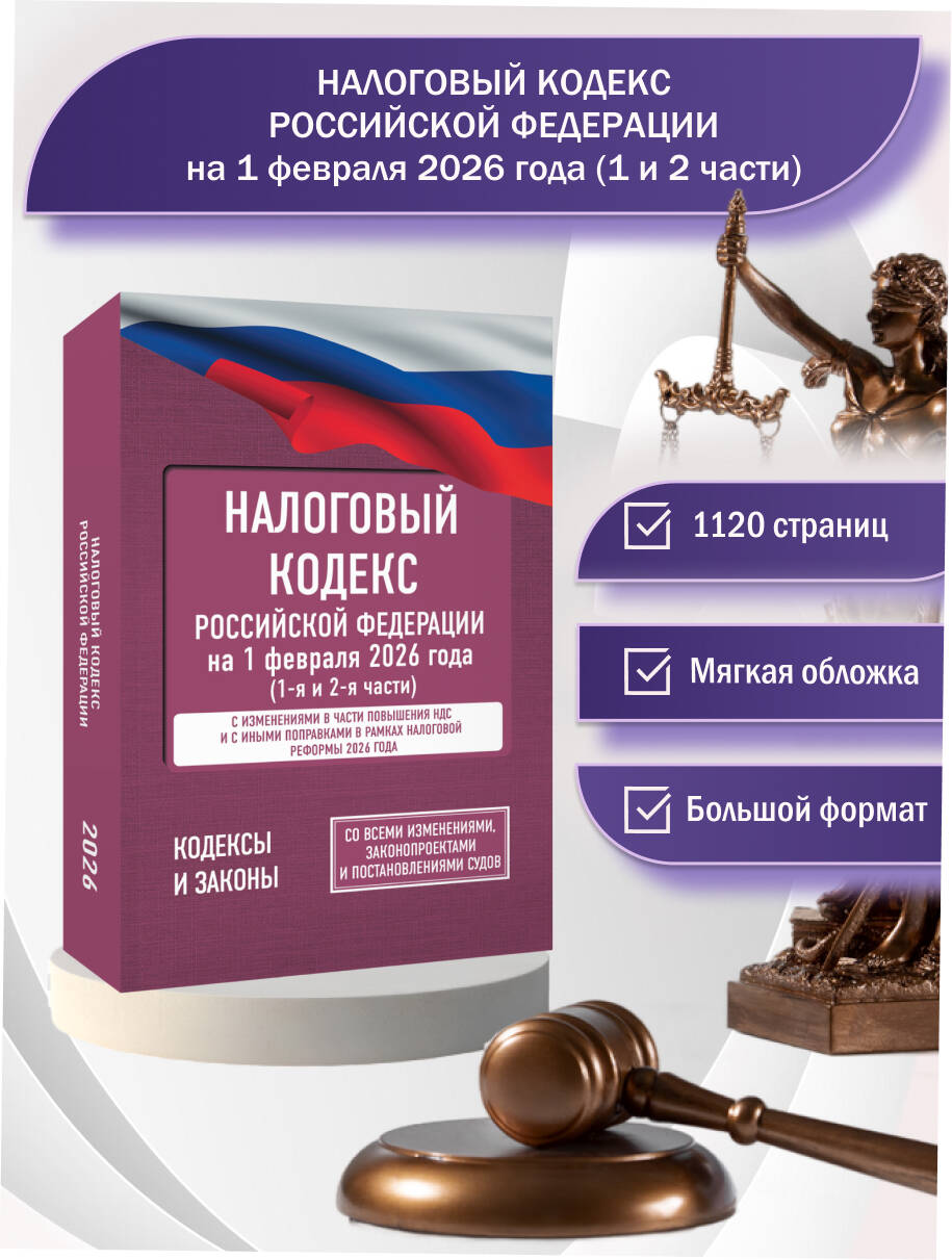 Данное издание Налогового кодекса Российской Федерации сверено с официальным источником и приводится по состоянию на 1 февраля 2026 года. Кодекс учитывает все изменения, опубликованные в официальных источниках на момент подписания издания в печать. Для более удобного использования в тексте кодекса применяется система сокращенного написания отдельных слов и выражений, а также приводятся ссылки на законопроекты, федеральные законы, постановления и определения высших судебных органов Российской Федерации, относящиеся к вопросам применения норм налогового права.| Издательство | Издательство "АСТ" |