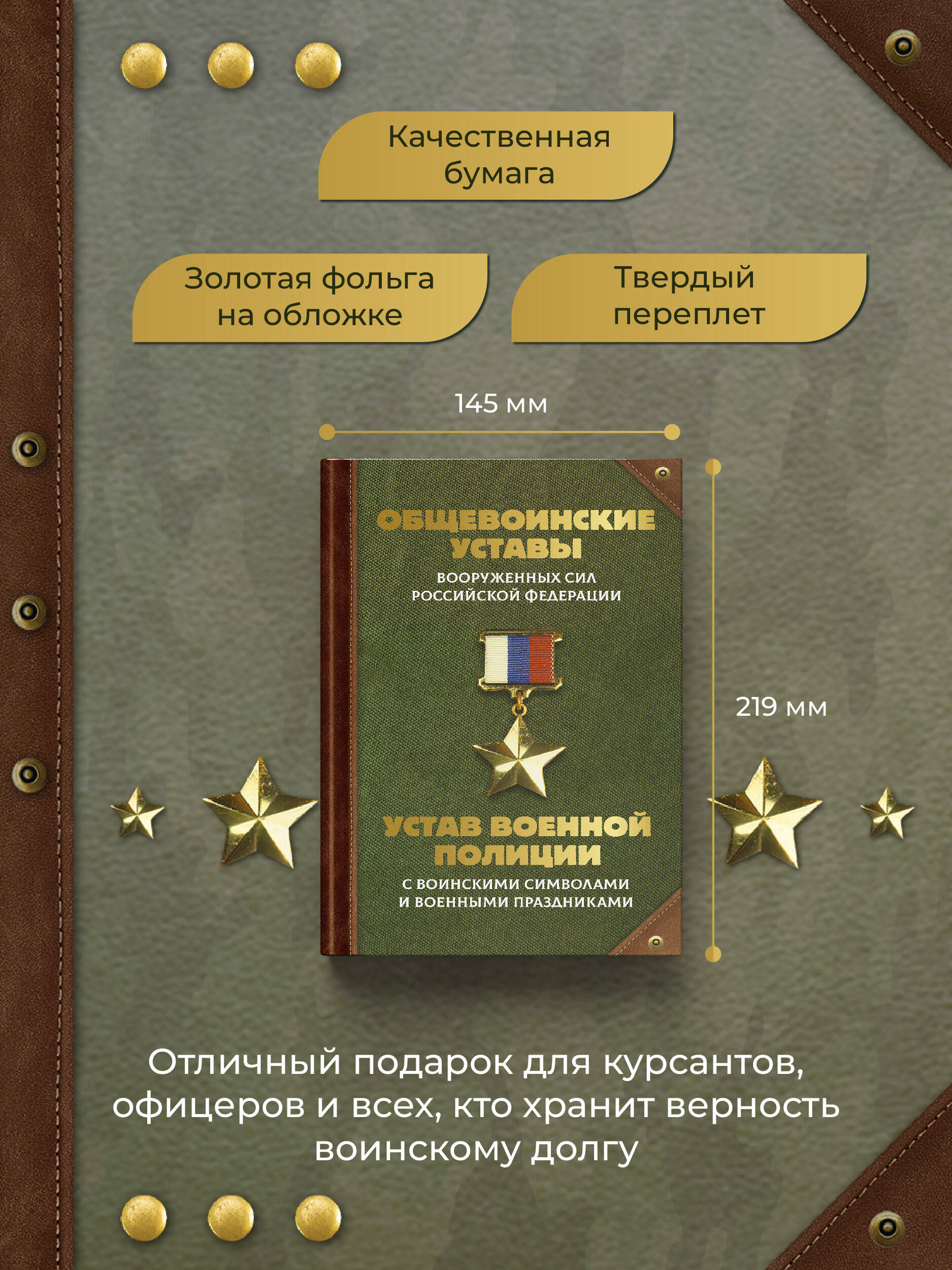 Аннотация: Общевоинские уставы Вооруженных Сил Российской Федерации и Устав военной полиции с воинскими символами и военными праздниками