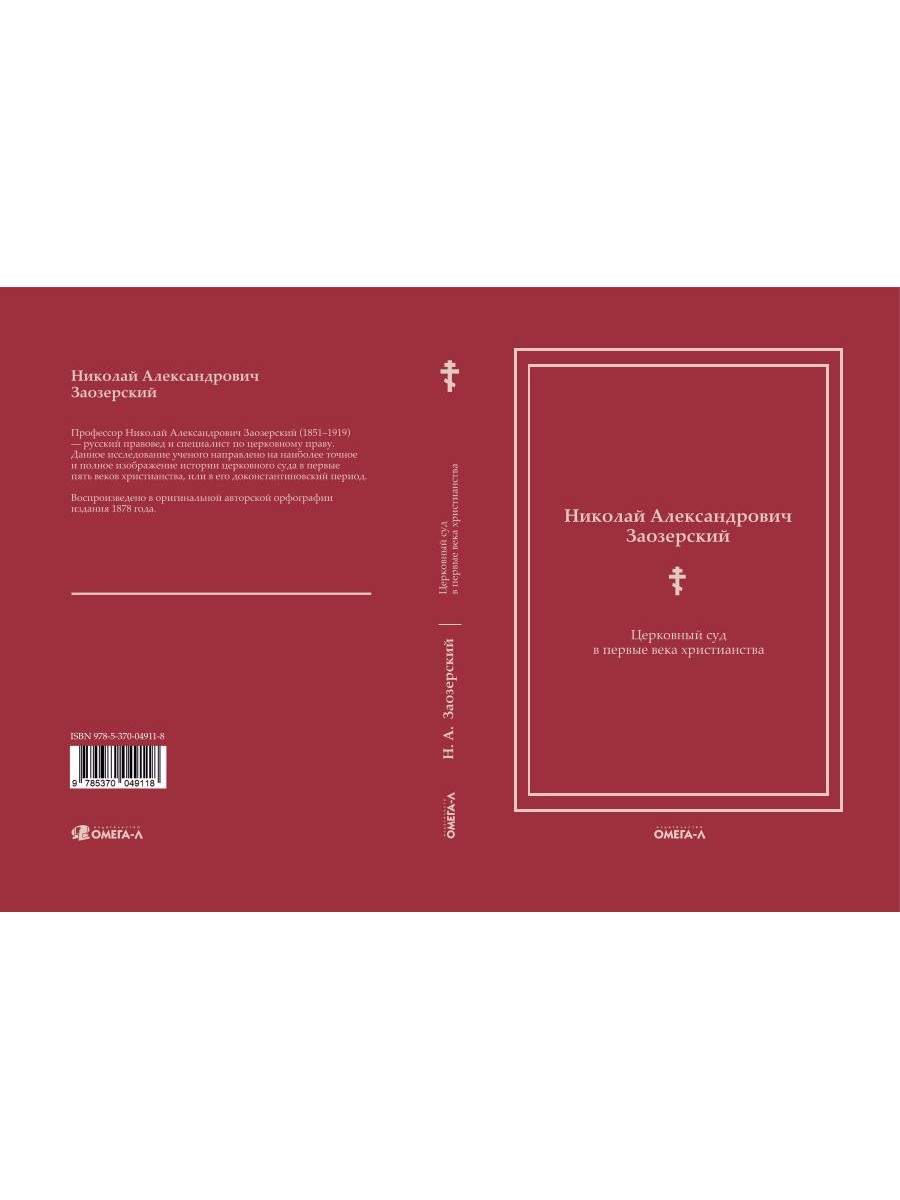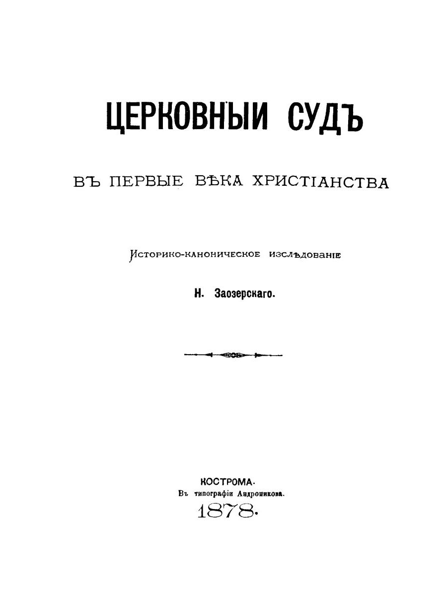 Профессор Николай Александрович Заозерский (1851-1919) - русский правовед и специалист по церковному праву. Данное исследование ученого направлено на наиболее точное и полное изображение истории церковного суда в первые пять веков христианства или в его доконстантиновский период. Воспроизведено в оригинальной авторской орфографии издания 1878 года (Кострома: Типография Андроникова, 1878. - 349 с.).| Издательство | Омега-Л |