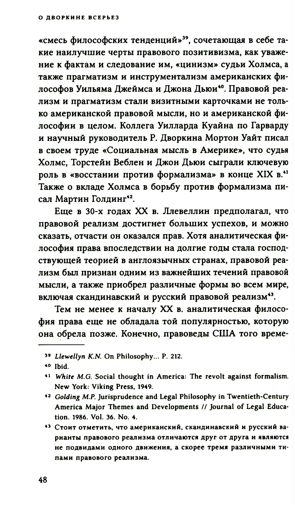 Монография посвящена современной англо-американской философии права и, в частности, теории известного американского философа права Рональда Майлса Дворкина (1931-2013) - одного из самых известных критиков позитивистской теории ГЛ.А. Харта. Для того чтобы определить, какое место философия права Дворкина занимает в мире англо-американской традиции, автор исследует современную философию права (включая ее историю и дебаты о предмете), а также три основных этапа философии права Дворкина (теорию правовых принципов раннего этапа, интерпретивизм среднего и признание права как части политической морали позднего этапа), выделяя основные черты его теории и тестируя на принадлежность к основным направлениям: правовому позитивизму, правовому реализму, школе естественного права. Автор приходит к выводу, что философия права Дворкина хоть и содержит в себе свойства основных правовых школ англо-американской традиции, является самодостаточной и своеобразной междисциплинарной философско-правовой концепцией, которую можно обозначить как «нормативная антипозитивистская теория». Книга адресована специалистам, студентам и кругу читателей, чьи интересы связаны с философией права, политической философией и правоведением.| Издательство | ИД Высшей школы экономики |