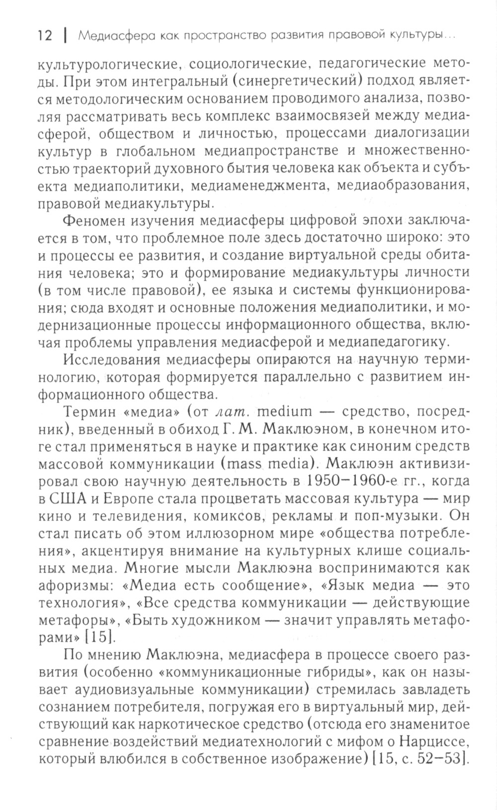 В коллективной монографии раскрываются теоретические и практические аспекты исследования образовательного потенциала медиасферы как пространства развития правовой культуры и культуры прав человека в современной России. Авторами проведен анализ концептуальных положений современной гуманитарной науки, таких как: цифровая эпоха, глобальные трансформации, образовательные ресурсы медиасферы, правовая культура, культура прав человека, медиакультура, медиаобразование и медиакомпетентность и др. Особое внимание в книге уделяется новым образовательным ресурсам медиасферы в системе правового воспитания личности.