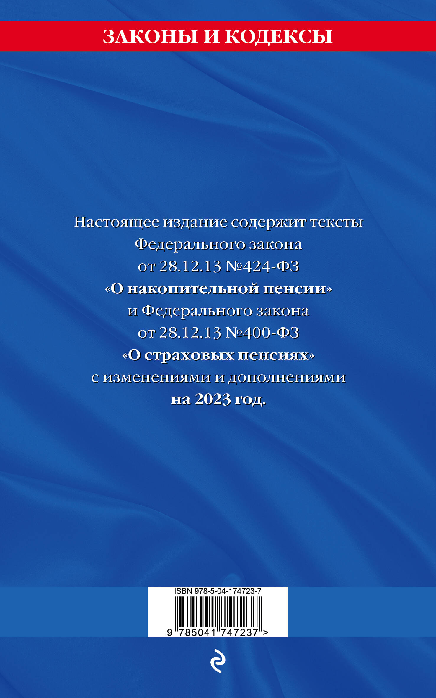 Настоящее издание содержит тексты Федерального закона от 28.12.13 №424-ФЗ "О накопительной пенсии" и Федерального закона от 28.12.13 №400-ФЗ "О страховых пенсиях" с изменениями и дополнениями на 2023 год.| Издательство | ООО "Издательство "Эксмо" |