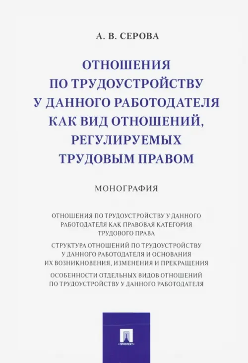 В монографии рассмотрены понятие, признаки, структура и классификация отношений по трудоустройству у данного работодателя в свете новейшего законодательства. Исследованы проблемы информационной составляющей таких отношений, а также актуальные вопросы дистанционных отношений по трудоустройству у данного работодателя, отношений по трудоустройству у данного работодателя с участием частного агентства занятости. Даны рекомендации по совершенствованию норм ТК РФ.
