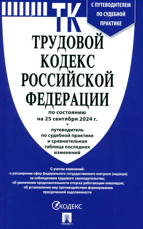 Трудовой кодекс РФ по состоянию на 25.09.2024 с таблицей изменений и с путеводителем по судебной практике