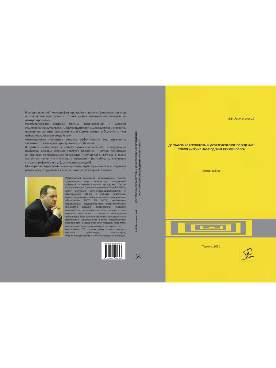 Аннотация: Доправовые регуляторы и дочеловеческое поведение: этологические наблюдения криминолога: монография