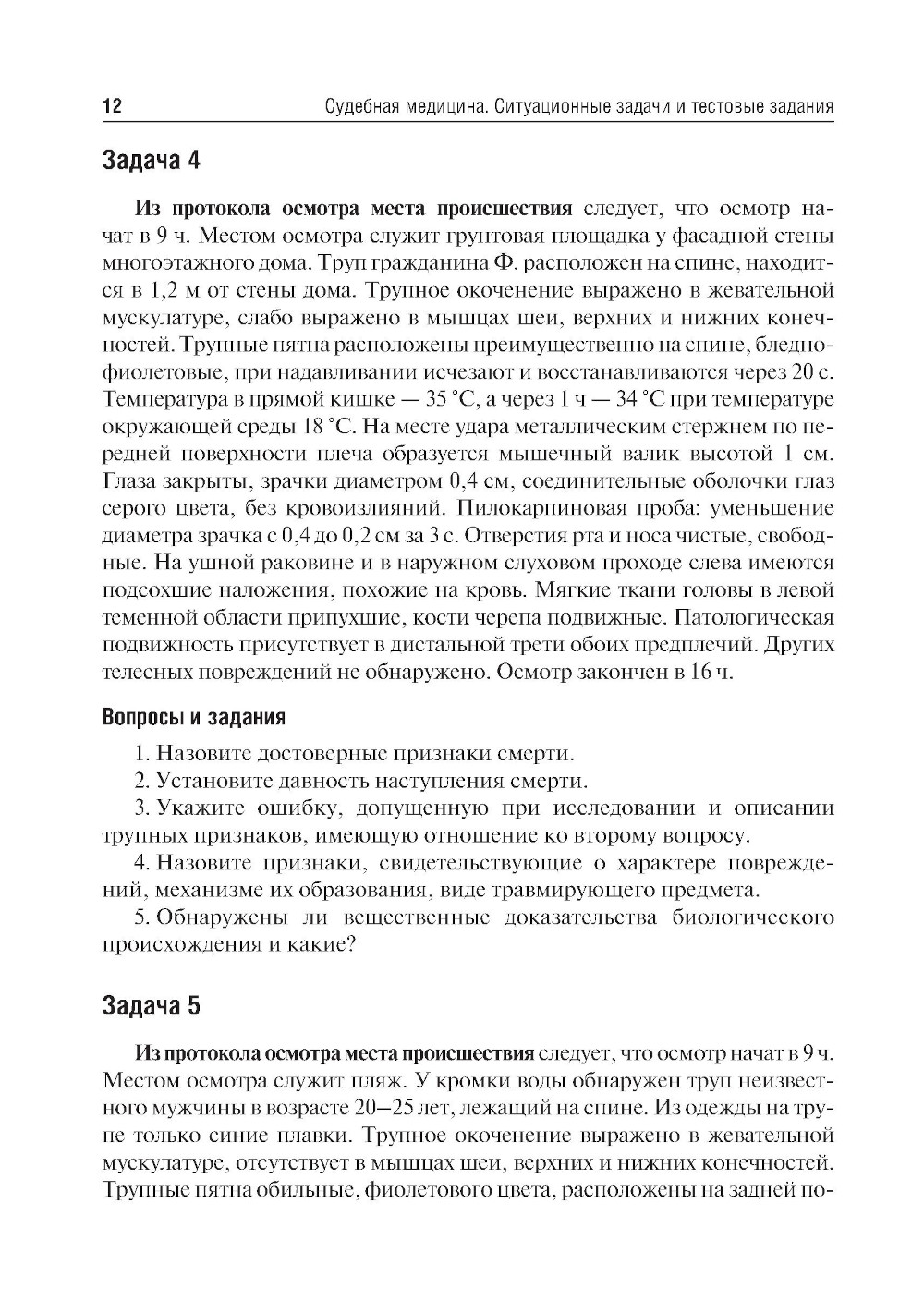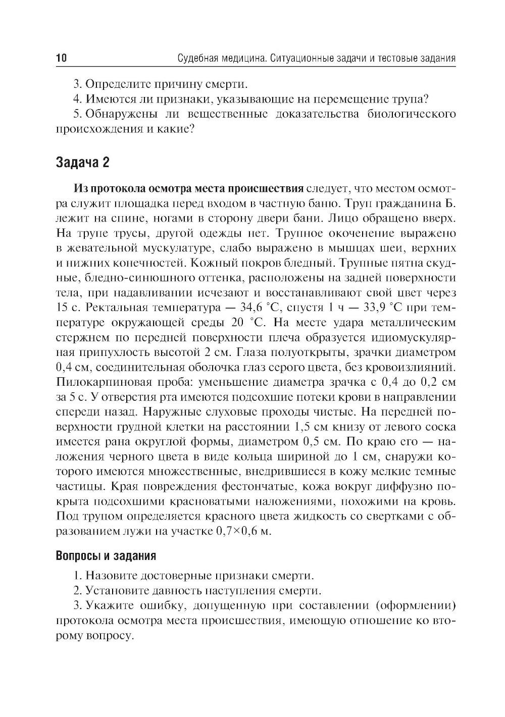 Аннотация: Судебная медицина. Ситуационные задачи и тестовые задания. Подготовка к курсовому зачету: учебное пособие. 2-е изд., перераб. и доп