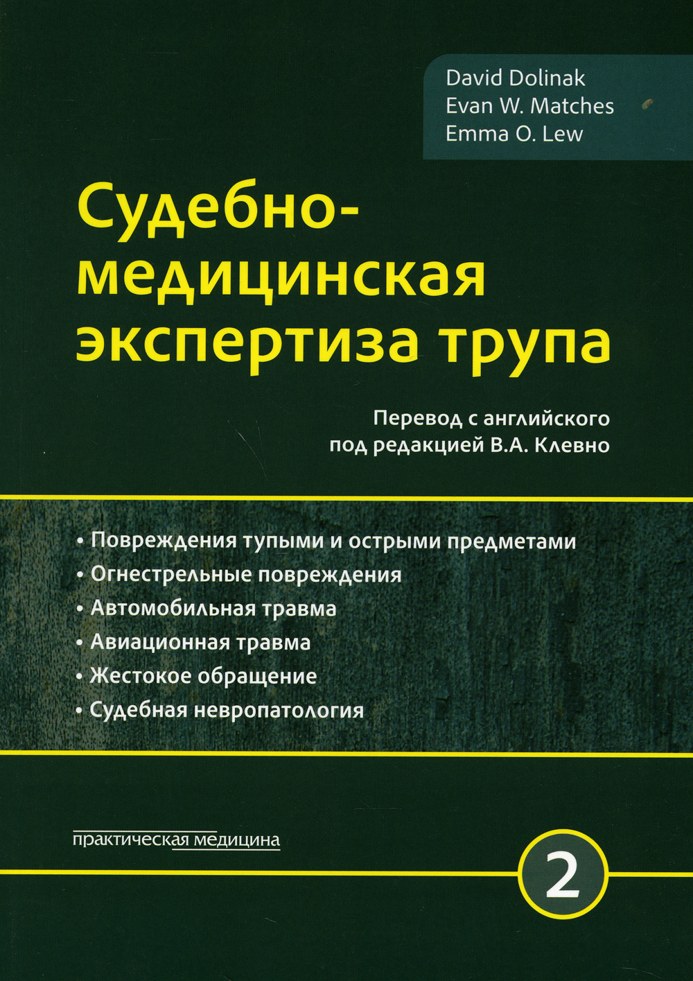 Трехтомное иллюстрированное руководство «Судебно-медицинская экспертиза трупа» охватывает практически все разделы указанной темы. В первом томе содержатся ценные рекомендации по технике вскрытия, осмотру места происшествия при различных видах смерти, изъятию материала для дополнительных исследований. Большое внимание уделено вопросам судебно-медицинской диагностики скоропостижной смерти. Во втором томе рассмотрены вопросы судебно-медицинской травматологии, в частности, судебно-медицинское значение наружных повреждений на теле при разных видах травмирующего воздействия, диагностика взрывной травмы, идентификация орудия травмы, повреждения тупыми и острыми предметами, огнестрельные повреждения, транспортная травма. Отражены осложнения повреждений и оценка их связи с наступлением смерти. Отдельная глава посвящена повреждениям головы и головного мозга. Третий том содержит главы, раскрывающие вопросы судебно-медицинской диагностики механической асфиксии, повреждений от действия крайних температур и других физических факторов, а также вопросы судебно-медицинской токсикологии. Руководство включает в себя большое количество цветных иллюстраций и в определенной степени может использоваться в качестве атласа. Книга будет полезна студентам медицинских вузов, работникам правоохранительных органов, судов и адвокатуры. Учитывая, что книга написана довольно простым языком, содержит многочисленные фотографии и примеры из практики, она может быть интересна и широкому кругу читателей, интересующихся вопросами судебной медицины. Для судебно-медицинских экспертов, стажеров и клинических ординаторов по специальности «Судебная медицина».| Издательство | Практическая медицина |