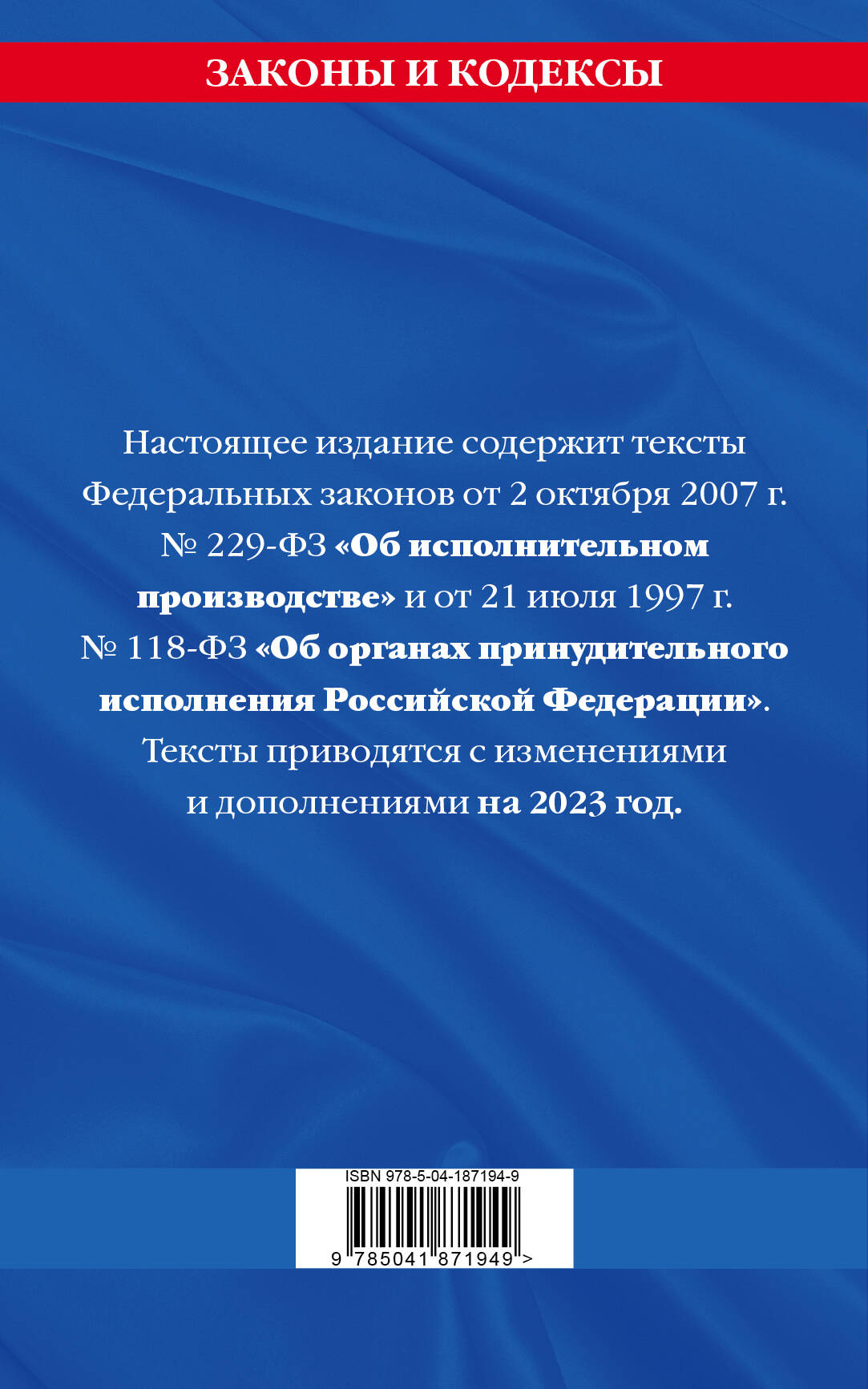 Аннотация: ФЗ "Об исполнительном производстве". ФЗ "Об органах принудительного исполнения Российской Федерации" по сост. на 2023 г. / ФЗ №229-ФЗ. ФЗ №118-ФЗ