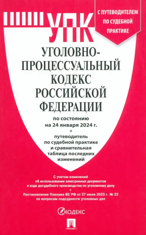 Аннотация: Уголовно-процессуальный кодекс РФ по состоянию на 24.01.2024 с таблицей изменений и с путеводителем