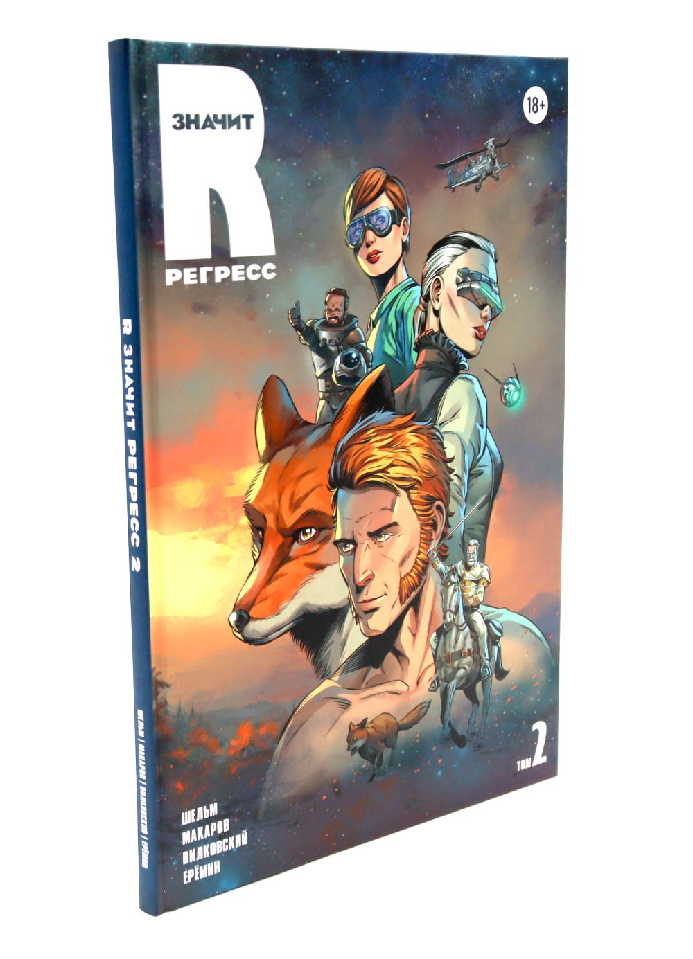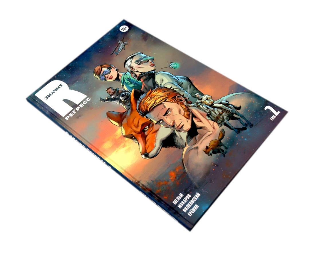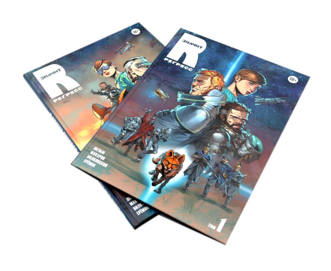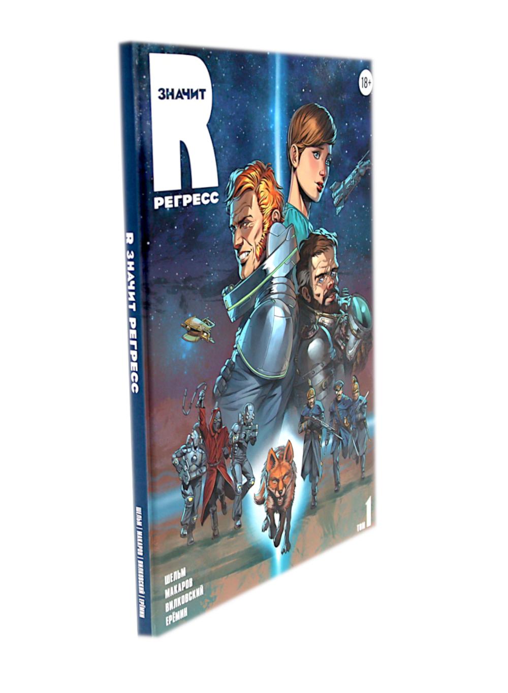 «R значит Регресс» - отечественный графический роман в жанре retro sci-fi с элементами стимпанка и киберпанка. Два тома комикса погружают читателя в захватывающий мир космических приключений, интриг и технологических парадоксов, где прошлое и будущее переплетаются в причудливом симбиозе. Том 1 (2023) знакомит читателя с ключевым героем и вселенной: Рейнар отправляется на Гаэлию - планету на завершающей стадии регресса, сулящую богатую добычу контрабандисту. Читатель погружается в мир гильдий, Вирта (виртуальной реальности), биокомпьютеров и космических перелётов. Задаются главные загадки: кто такие метаморфы, почему их истребили и что скрывает прошлое Рейнара? Том 2 (2024) развивает сюжет и углубляет характеры: Продолжаются приключения Рейнара и его спутников: раскрываются судьбы Лара, Вычислителя и Нины. Звучат новые вопросы: что произошло на базе контрабандистов? Куда ведёт амбиции помощницы министра космоса? Сможет ли Нина преодолеть чувства к Рейнару? Мир расширяется: появляются новые локации, технологии и конфликты.| Издательство | Alpaca |