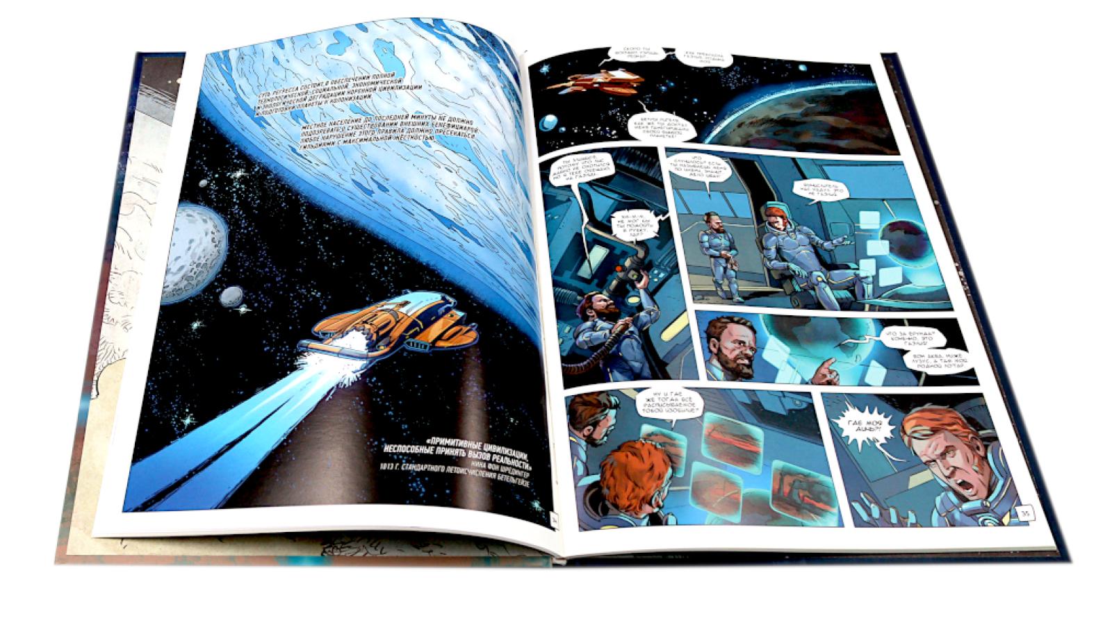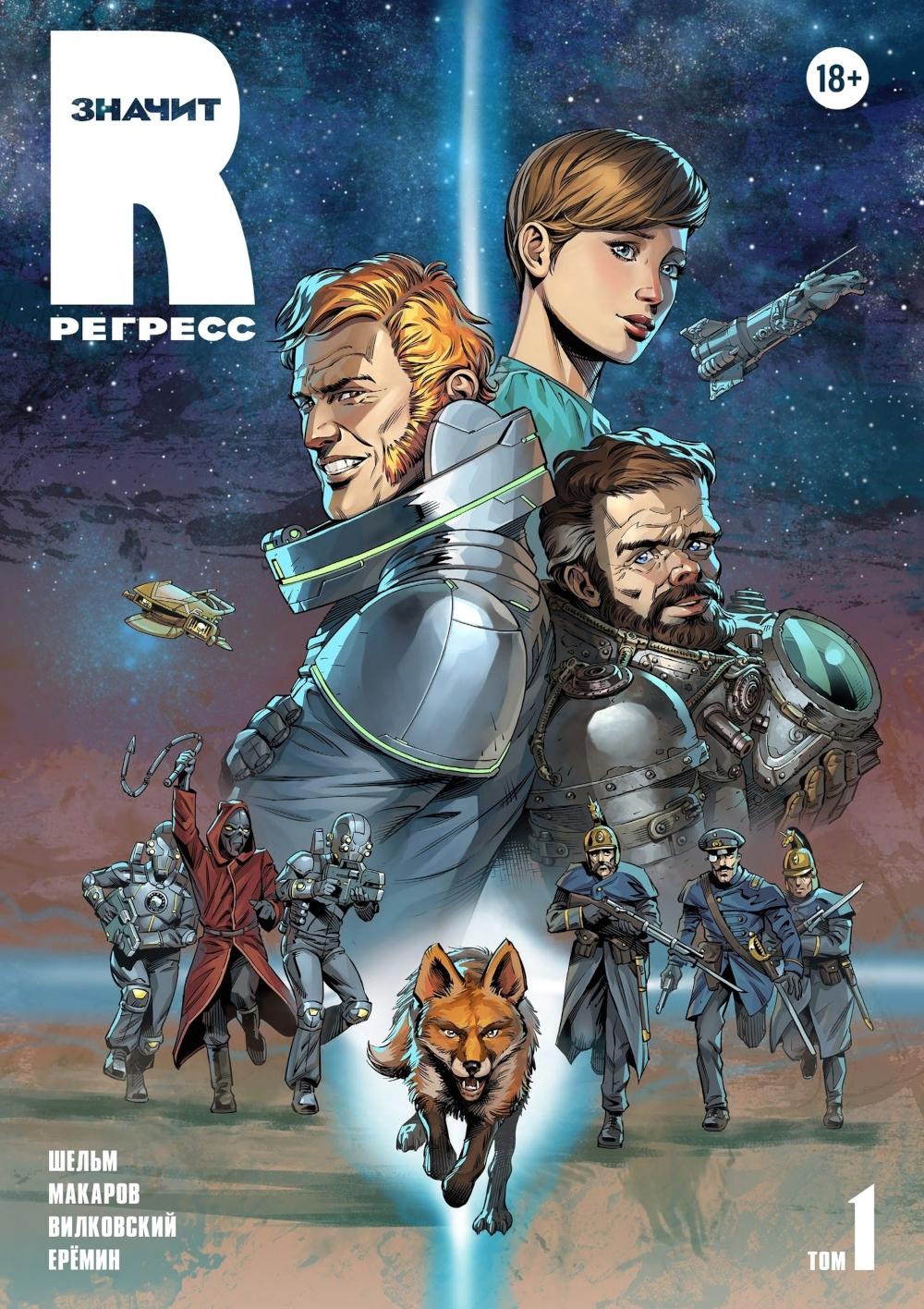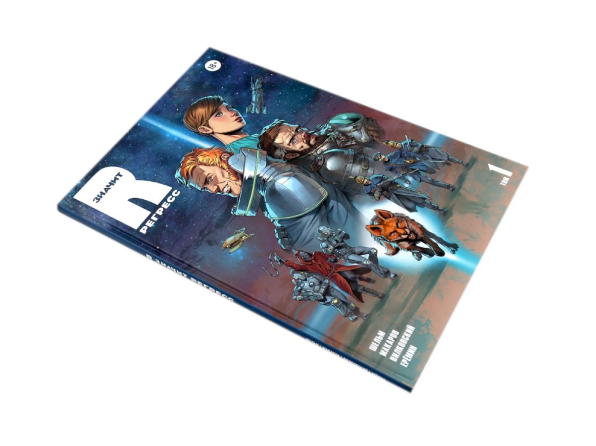 «R значит Регресс» - отечественный графический роман в жанре retro sci-fi с элементами стимпанка и киберпанка. Два тома комикса погружают читателя в захватывающий мир космических приключений, интриг и технологических парадоксов, где прошлое и будущее переплетаются в причудливом симбиозе. Том 1 (2023) знакомит читателя с ключевым героем и вселенной: Рейнар отправляется на Гаэлию - планету на завершающей стадии регресса, сулящую богатую добычу контрабандисту. Читатель погружается в мир гильдий, Вирта (виртуальной реальности), биокомпьютеров и космических перелётов. Задаются главные загадки: кто такие метаморфы, почему их истребили и что скрывает прошлое Рейнара? Том 2 (2024) развивает сюжет и углубляет характеры: Продолжаются приключения Рейнара и его спутников: раскрываются судьбы Лара, Вычислителя и Нины. Звучат новые вопросы: что произошло на базе контрабандистов? Куда ведёт амбиции помощницы министра космоса? Сможет ли Нина преодолеть чувства к Рейнару? Мир расширяется: появляются новые локации, технологии и конфликты.| Издательство | Alpaca |