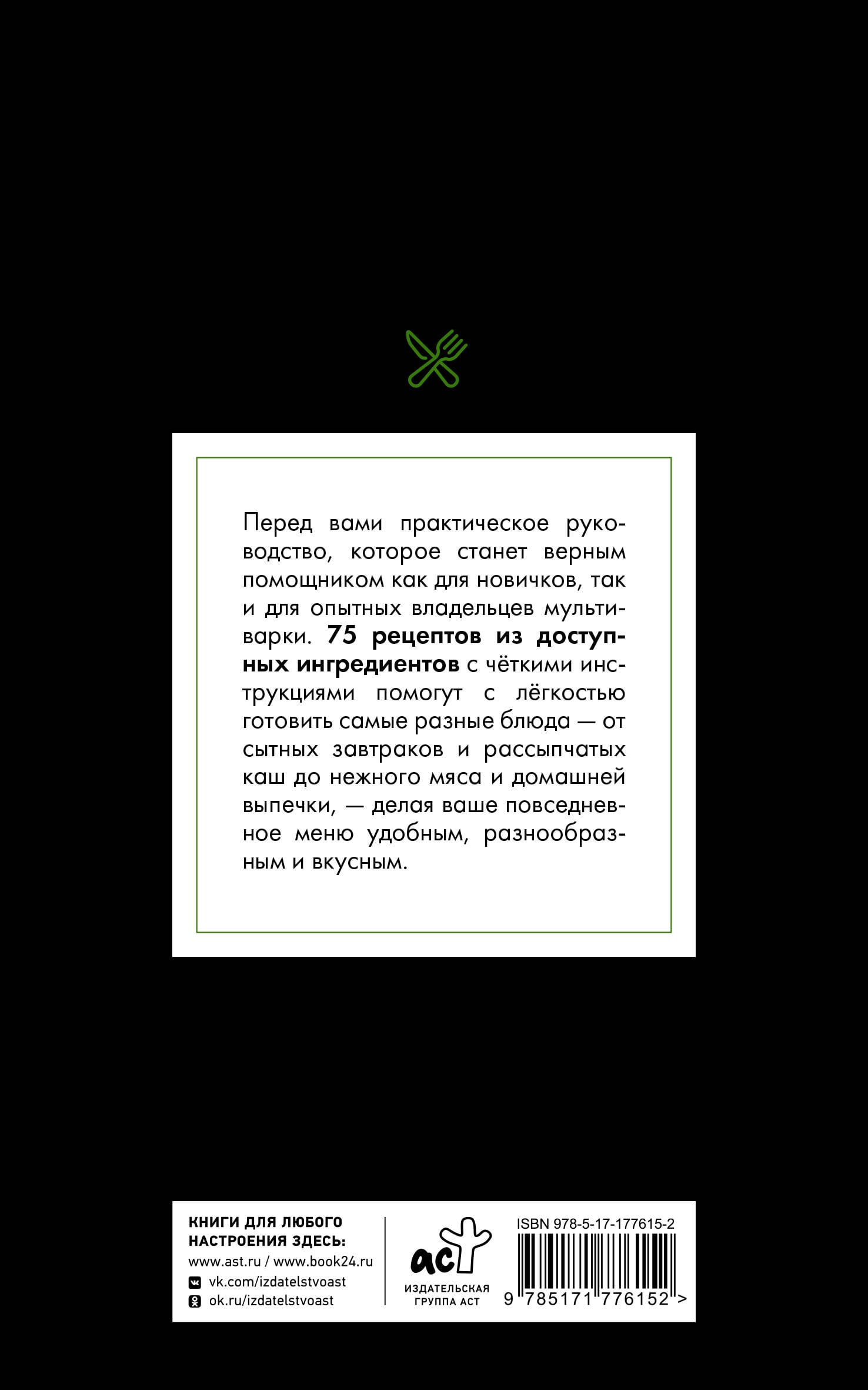 Перед вами практическое руководство, которое станет верным помощником как для новичков, так и для опытных владельцев мультиварки. 75 рецептов из доступных ингредиентов с чёткими инструкциями помогут с лёгкостью готовить самые разные блюда - от сытных супов и рассыпчатых каш до нежного мяса и домашней выпечки, делая ваше повседневное меню удобным, разнообразным и вкусным.| Издательство | Издательство "АСТ" |