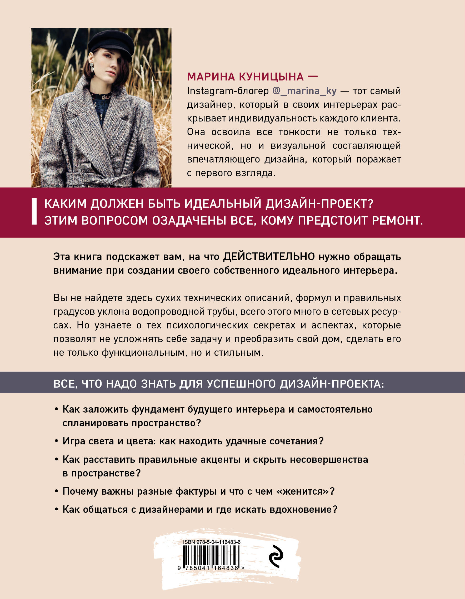 Каким должен быть идеальный дизайн-проект? Этим вопросом озадачены все, кому предстоит ремонт. Марина Куницына - Instagram блогер @_marina_ky - тот самый дизайнер, который в своих интерьерах раскрывает индивидуальность каждого клиента. Она освоила все тонкости не только технической, но и визуальной составляющей впечатляющего дизайна, который поражает с первого взгляда. Эта книга подскажет вам, на что ДЕЙСТВИТЕЛЬНО нужно обращать внимание при создании своего собственного идеального интерьера. Вы не найдете здесь сухих технических описаний, формул и правильных градусов уклона водопроводной трубы, всего этого много в сетевых ресурсах. Но узнаете о тех психологических секретах и аспектах, которые позволят не усложнять себе задачу и преобразить свой дом, сделать его не только функциональным, но и стильным. Все, что надо знать для успешного дизайн-проекта: Как заложить фундамент будущего интерьера и самостоятельно спланировать пространство? Игра света и цвета: как находить удачные сочетания? Как расставить правильные акценты и скрыть несовершенства в пространстве? Почему важны разные фактуры и что с чем «женится»? Как общаться с дизайнерами и где искать вдохновение?| Издательство | ООО "Издательство "Эксмо" |