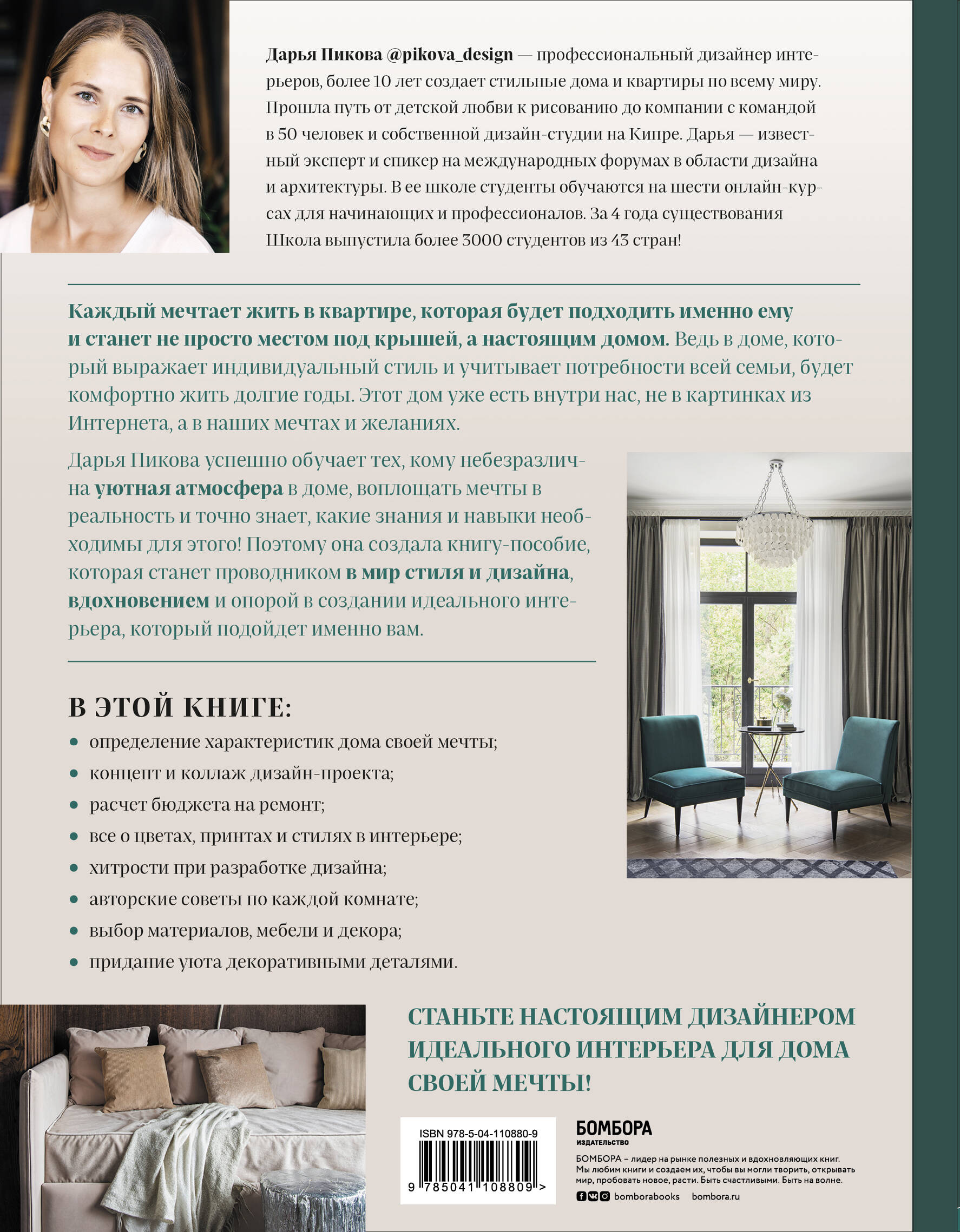 Каждый хочет жить в доме, который идеально подходит и отражает своего владельца. Доме, выражающим индивидуальный стиль и учитывающим потребности всей семьи, где будет комфортно долгие годы. Этот дом уже есть внутри нас, не в картинках из Интернета, а в наших мечтах и желаниях. Дарья Пикова, профессиональный дизайнер интерьеров, знает, что зачастую дом мечты может создать только сам человек. Поэтому она написала книгу, которая станет проводником в мир стиля и дизайна, вдохновением и опорой в создании идеального интерьера, который подойдет именно вам. В этой книге: - как определить дом своей мечты; - закладываем бюджет на ремонт; - все о цветах, принтах и стилях в интерьере; - концепт и коллаж дизайн-проекта; - хитрости при разработке дизайна; - авторские советы по каждой комнате; - выбор материалов, мебели и декора. Дарья Пикова @pikova_design - профессиональный дизайнер интерьеров, более 10 лет создает стильные дома и квартиры по всему миру. Прошла путь от детской любви к рисованию до компании с командой в 50 человек. Дарья - известный эксперт и спикер на международных форумах в области дизайна и архитектуры. В ее школе студенты обучаются на шести онлайн-курсах для начинающих и профессионалов. За 4 года существования Школа выпустила более 3000 студентов из 35 стран!| Издательство | ООО "Издательство "Эксмо" |