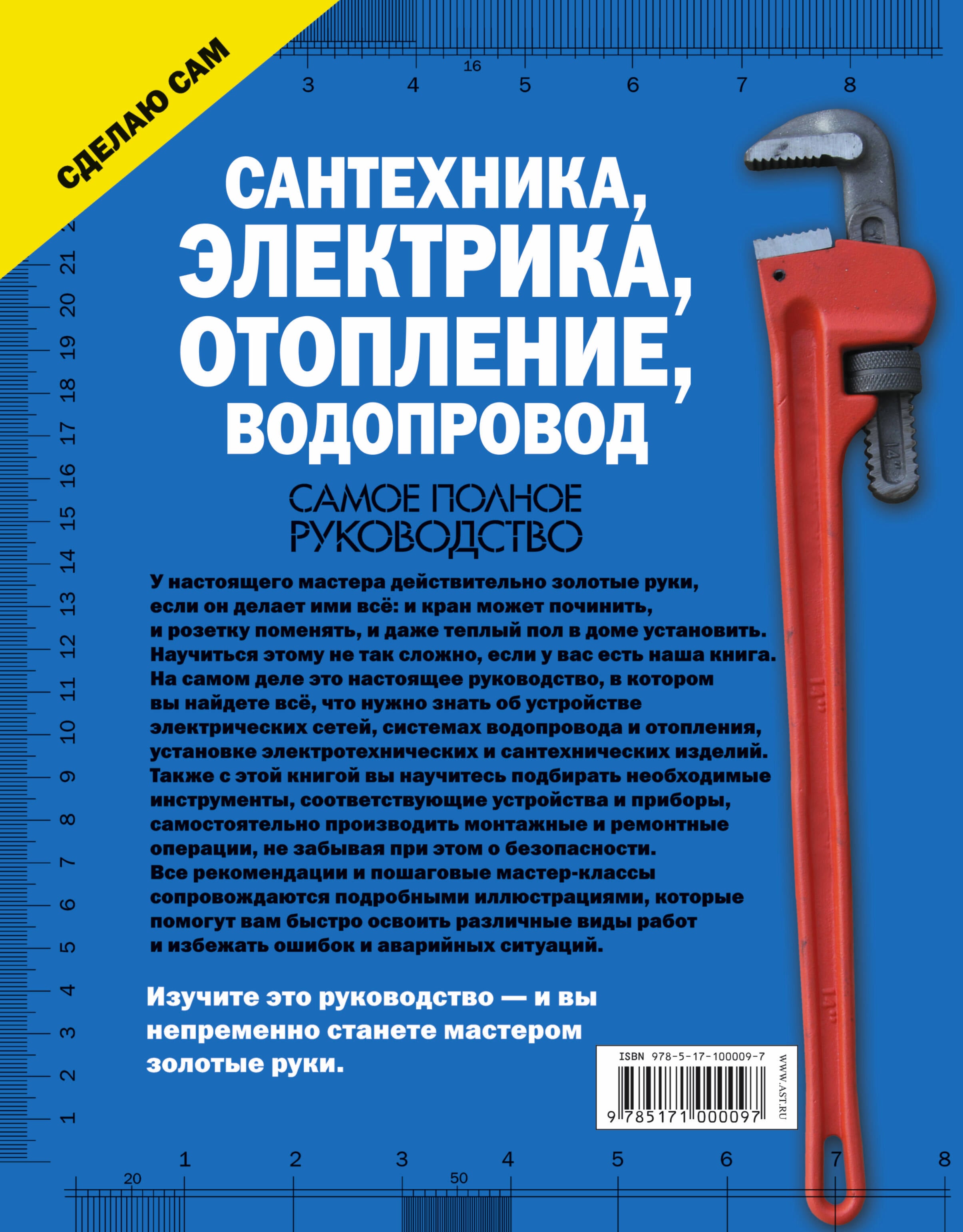 У настоящего мастера действительно золотые руки, если он делает ими всё: и кран может починить, и розетку поменять, и даже теплый пол в доме установить. Научиться этому не так сложно, если у вас есть наша книга. На самом деле это настоящее руководство, в котором вы найдете всё, что нужно знать об устройстве электрических сетей, системах водопровода и отопления, установке электротехнических и сантехнических изделий. Также с этой книгой вы научитесь подбирать необходимые инструменты, соответствующие устройства и приборы, самостоятельно производить монтажные и ремонтные операции, не забывая при этом о безопасности. Все рекомендации и пошаговые мастер-классы сопровождаются подробными иллюстрациями, которые помогут вам быстро освоить различные виды работ и избежать ошибок и аварийных ситуаций. Изучите это руководство - и вы непременно станете мастером золотые руки.| Издательство | Издательство "АСТ" |