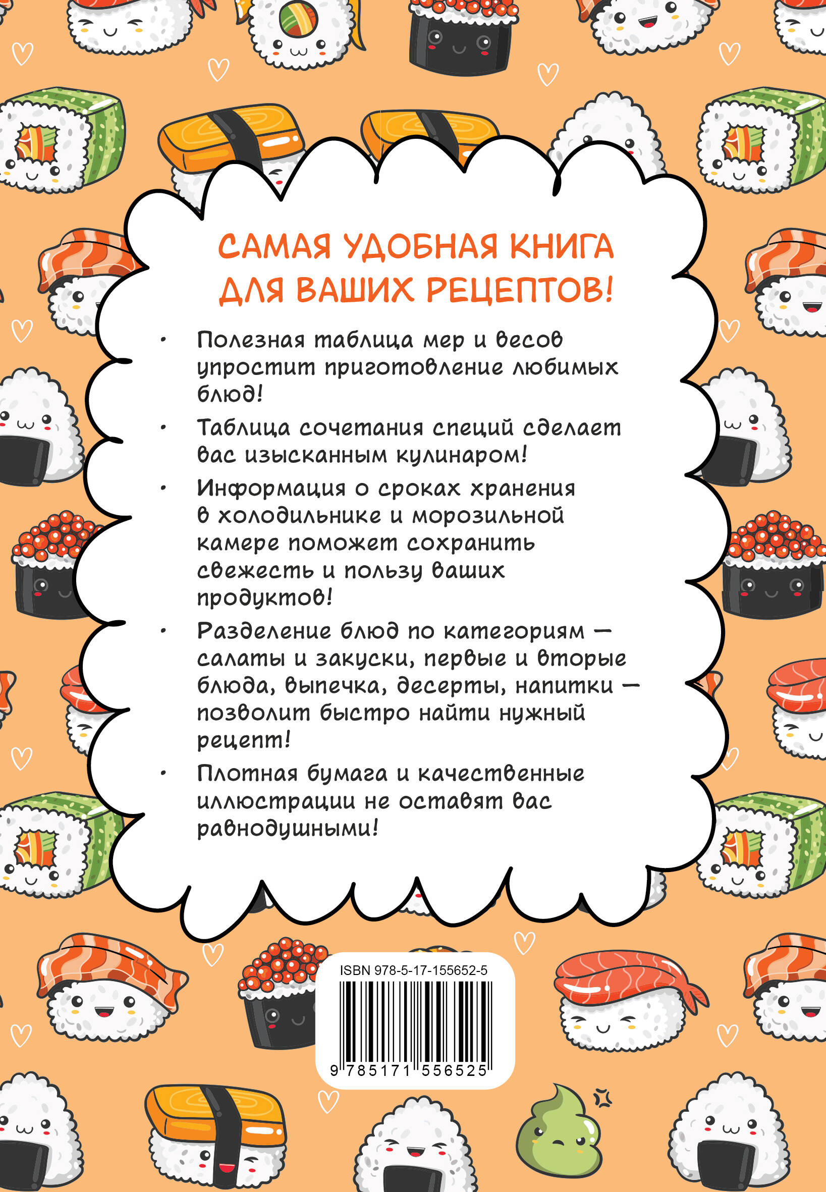 САМАЯ УДОБНАЯ КНИГА ДЛЯ ВАШИХ РЕЦЕПТОВ! • Полезная таблица мер и весов упростит приготовление любимых блюд! • Таблица сочетания специй сделает вас изысканным кулинаром! • Информация о сроках хранения в холодильнике и морозильной камере поможет сохранить свежесть и пользу ваших продуктов! • Разделение блюд по категориям - салаты и закуски, первые и вторые блюда, выпечка, десерты, напитки - позволит быстро найти нужный рецепт! • Плотная бумага и качественные иллюстрации не оставят вас равнодушными!| Издательство | ИЗДАТЕЛЬСТВО "АСТ" |