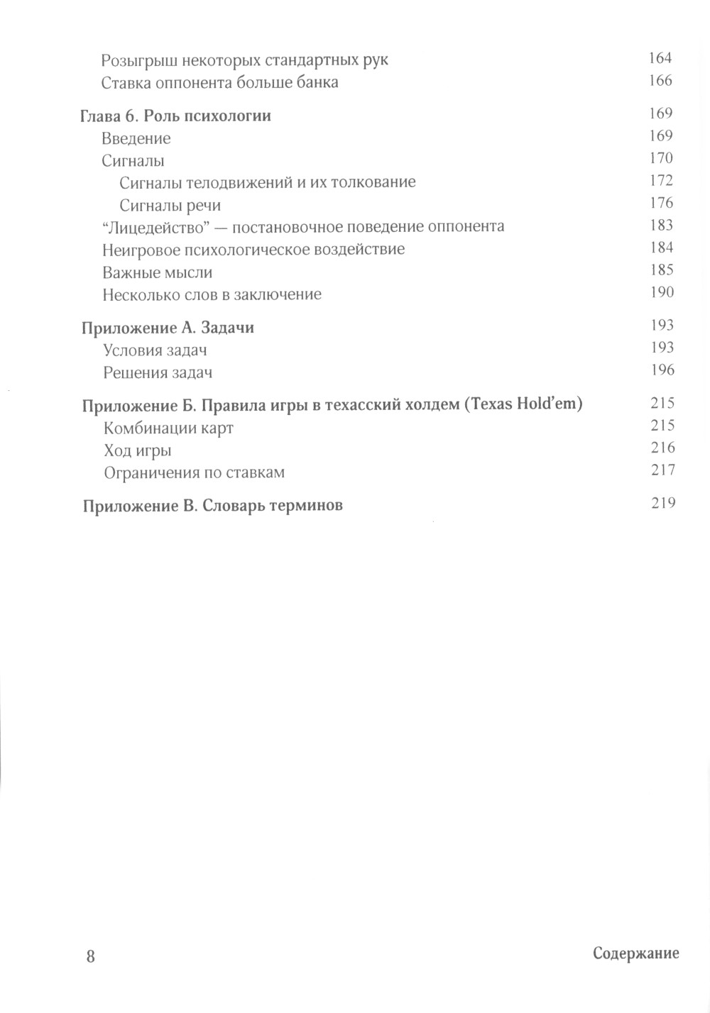 Это - прекрасный учебник. Чтобы научиться хорошо играть в покер, достаточно его прочесть. Здесь описаны секреты, которые не раскрывают даже профессионалы, каждая строка имеет вес. Уровень этой книги не ниже, чем любая работа Склански. По сути, в ней собран и структурирован десятилетний опыт авторов по подготовке игроков профессиональной команды. Благодаря этой книге, он теперь доступен читателям.| Издательство | Диалектика |