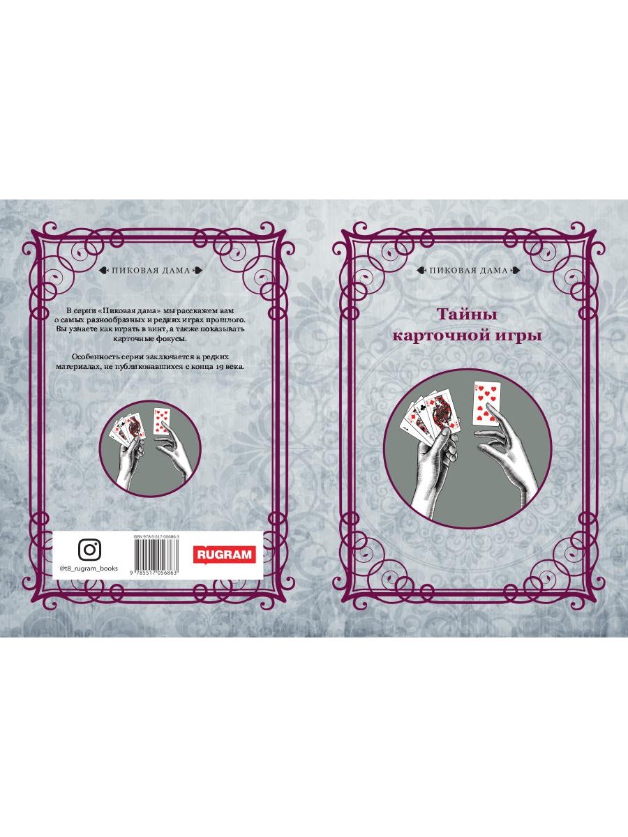 В серии «Пиковая дама» мы расскажем вам о самых разнообразных и редких играх прошлого. Вы узнаете как играть в винт, а также показывать карточные фокусы. Особенность серии заключается в редких материалах, не публиковавшихся с конца 19 века.| Издательство | Т8 RUGRAM |