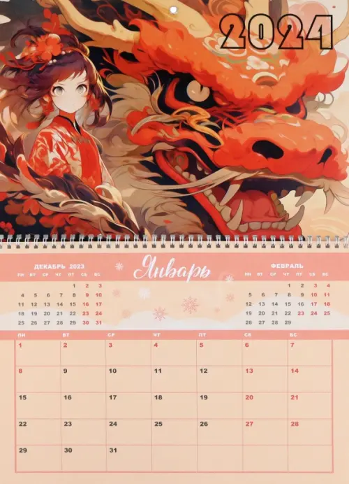 Настенный календарь на 2024 год с отрывным блоком "Дракон".