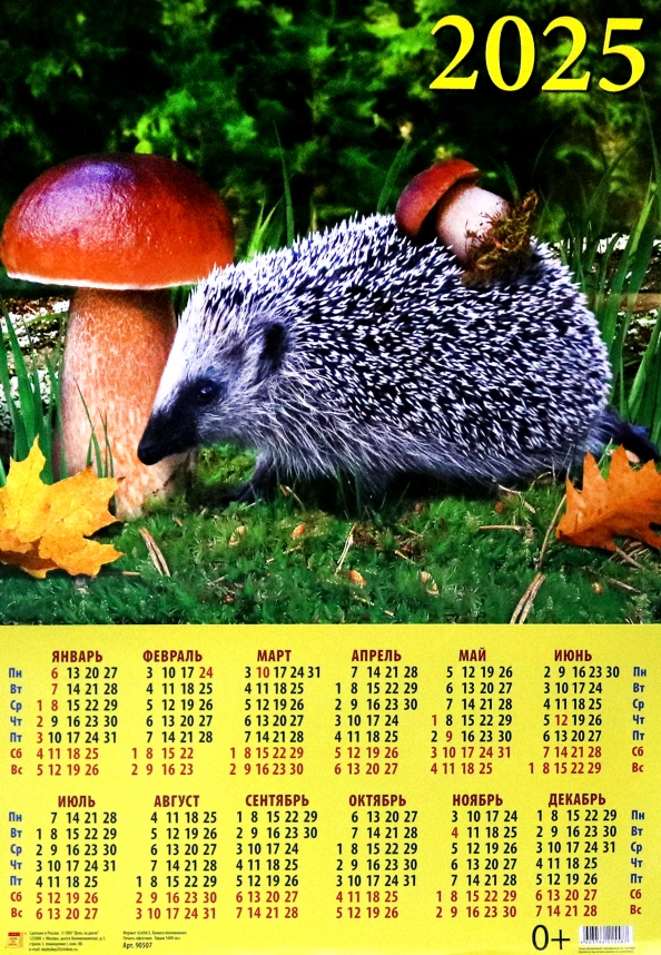 Календарь на 2025 год настенный листовой Ежик с грибом