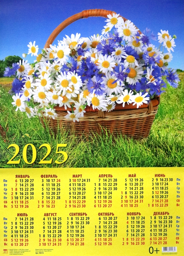 Календарь на 2025 год настенный листовой Корзина с ромашками и васильками