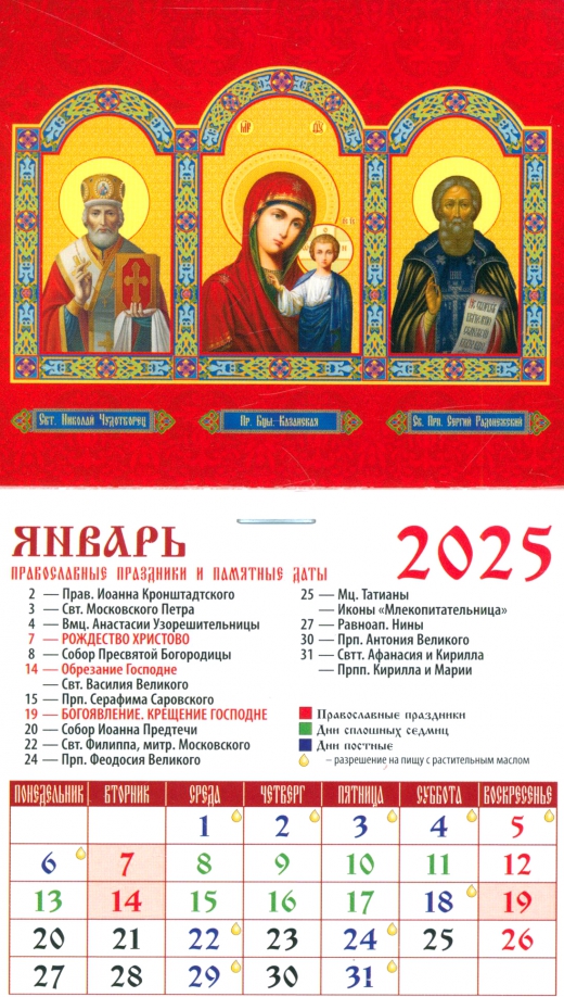 Календарь на магните на 2025 год Святитель Николай Чудотворец