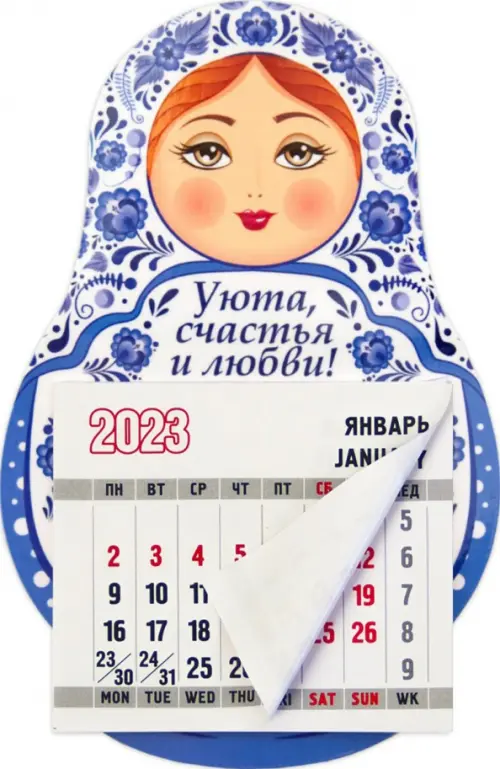 Магнит-матрешка с календарным блоком на 2023 год Уюта, счастья и любви
