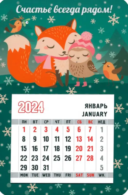 Календарь магнитный на 2024 год. Счастье всегда рядом!