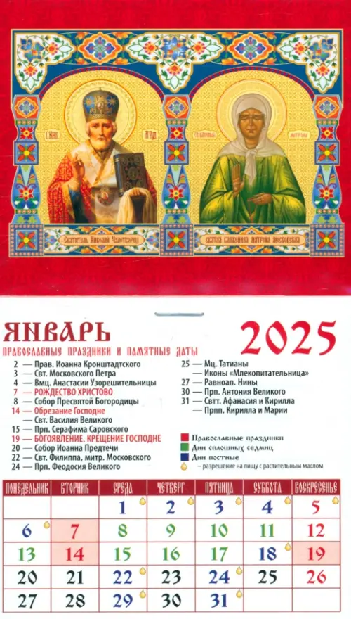 Календарь на магните на 2025 год Святитель Николай Чудотворец